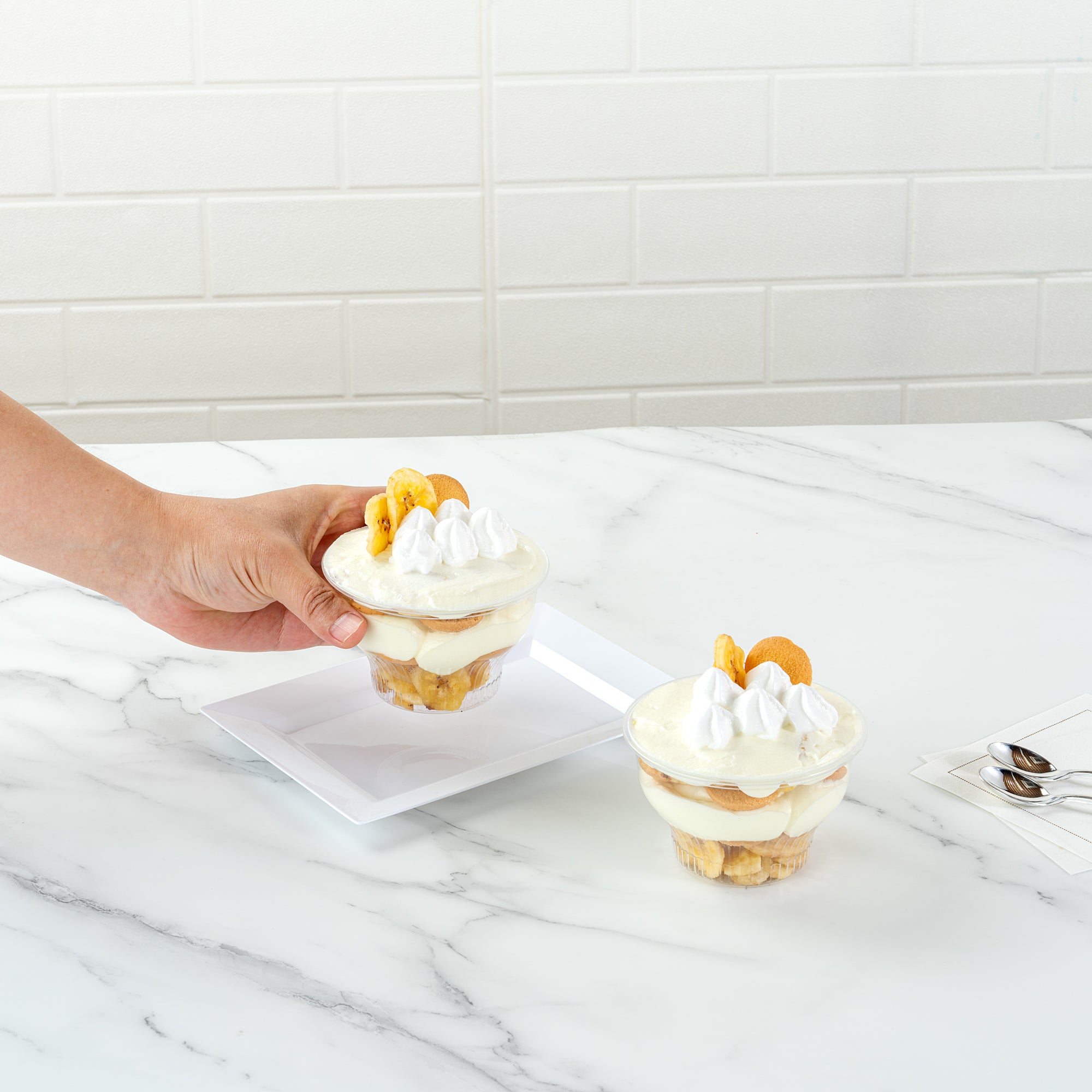 These dessert cups can be paired with our collection of RW Base matching lids to protect your desserts' freshness and flavors. Ensure your sweet treats stay delicious and well-preserved with our convenient lid options.