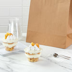 Featuring a tapered bottom design, these parfait cups offer a sleek and sophisticated aesthetic, enhancing the presentation of your desserts. Their clear finish enhances your desserts’ appeal.