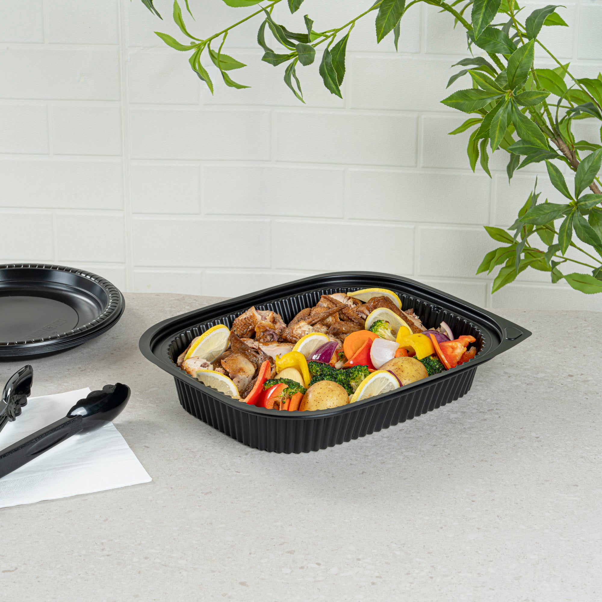 88 OZ RECTANGLE BLACK PLASTIC FOOD CONTAINER - MICROWAVABLE