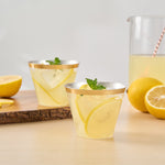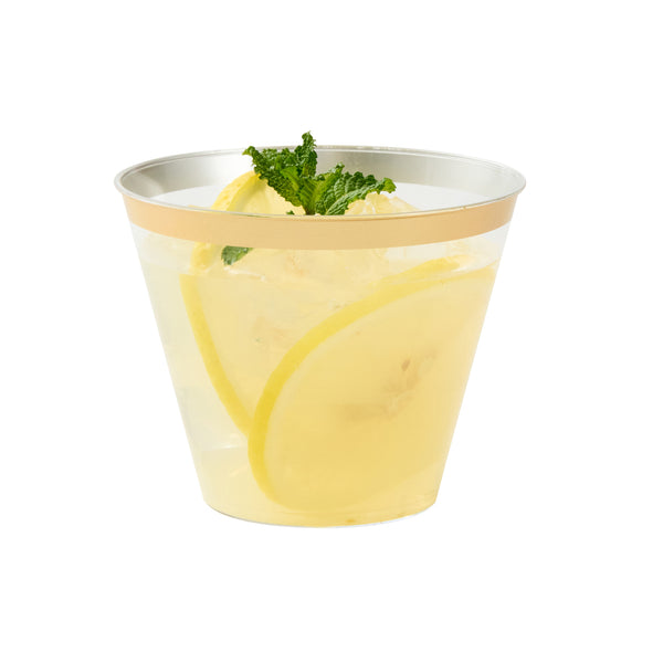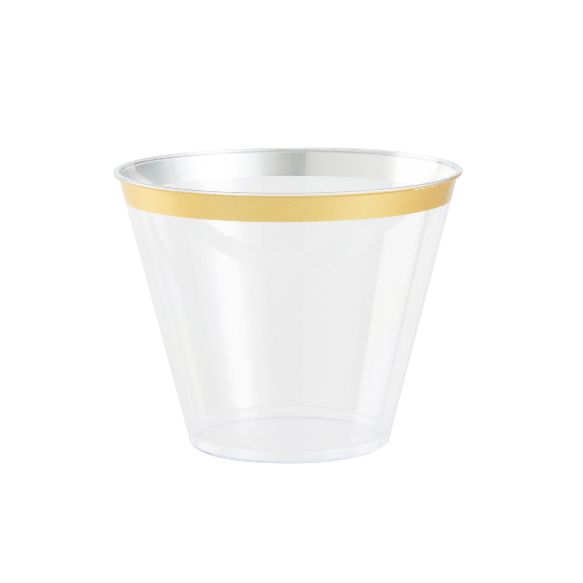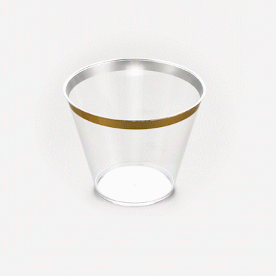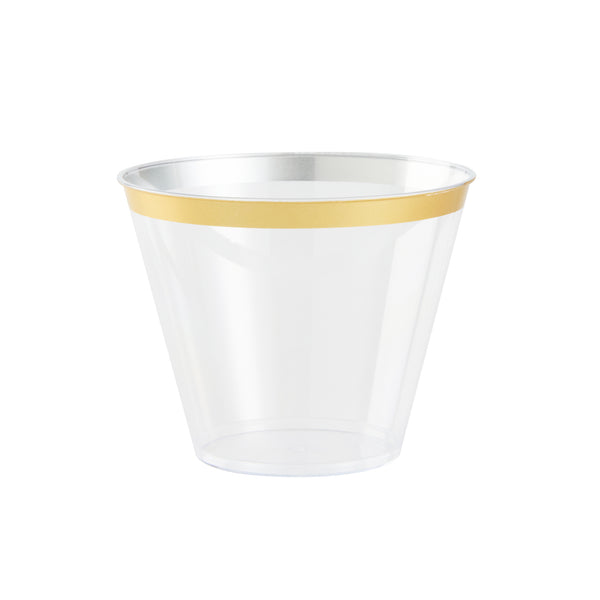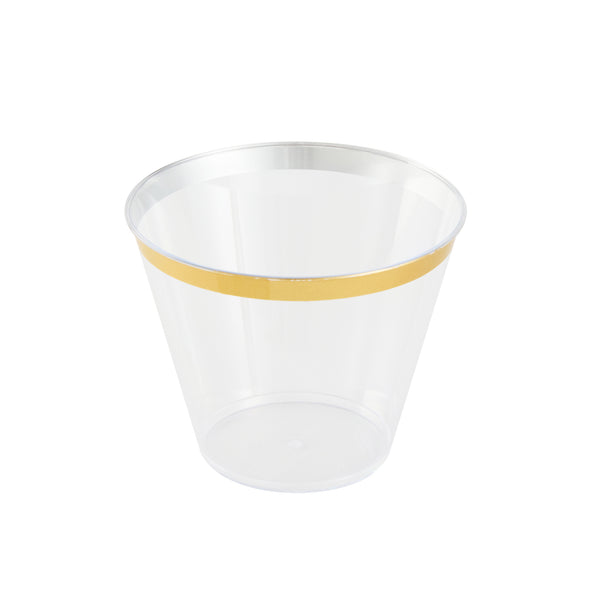 9 OZ CLEAR PLASTIC TUMBLER - WITH GOLD RIM