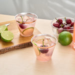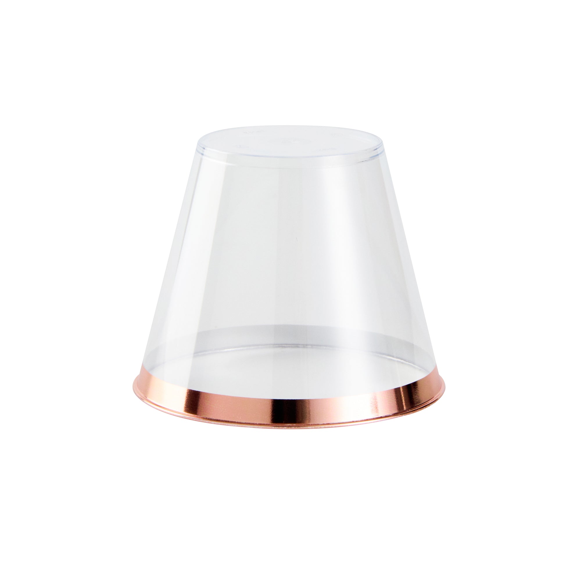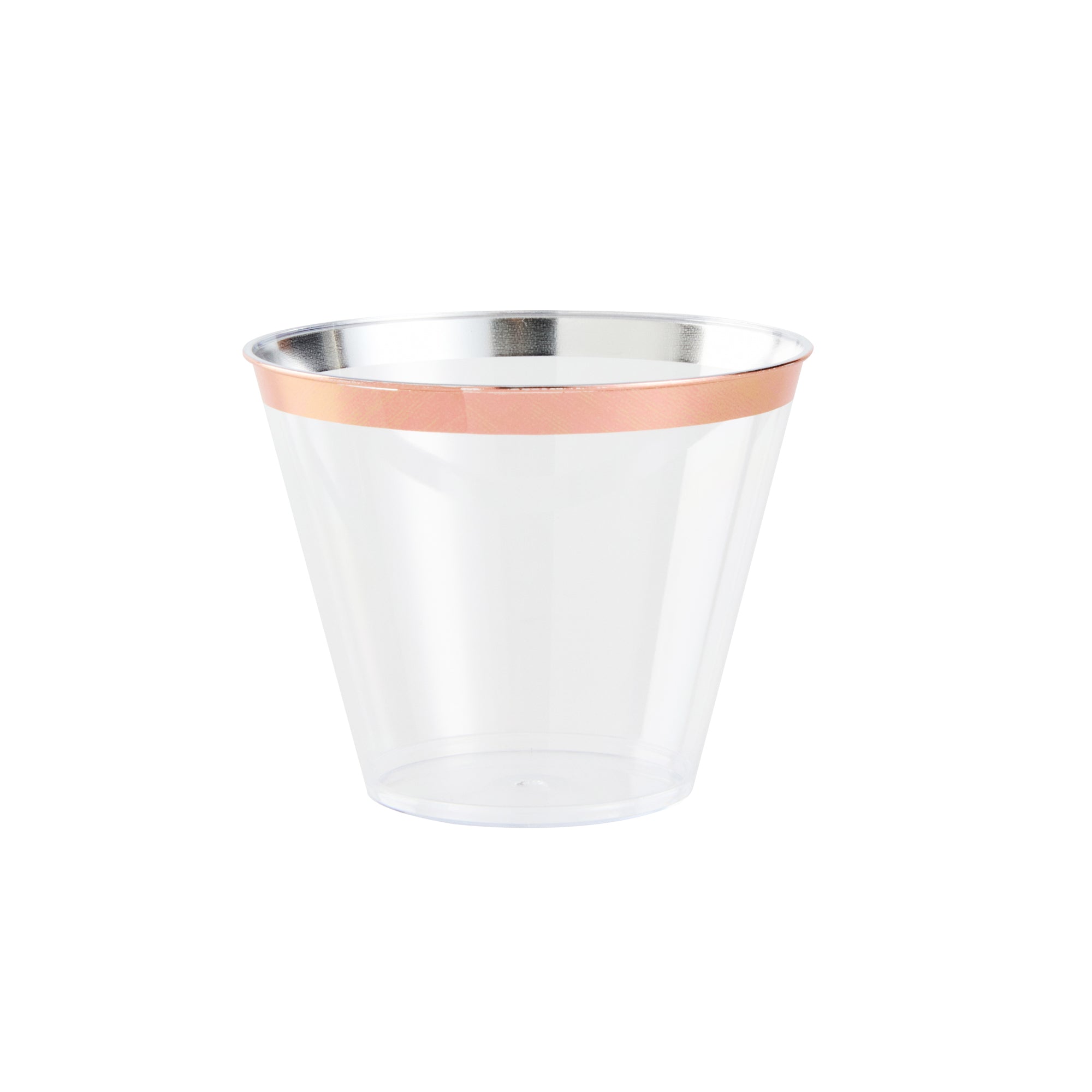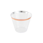 9 OZ CLEAR PLASTIC TUMBLER - WITH ROSE GOLD RIM