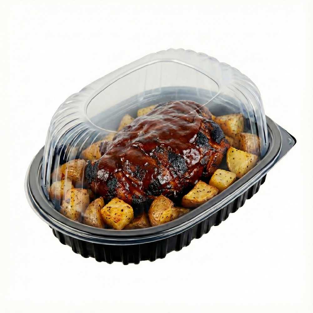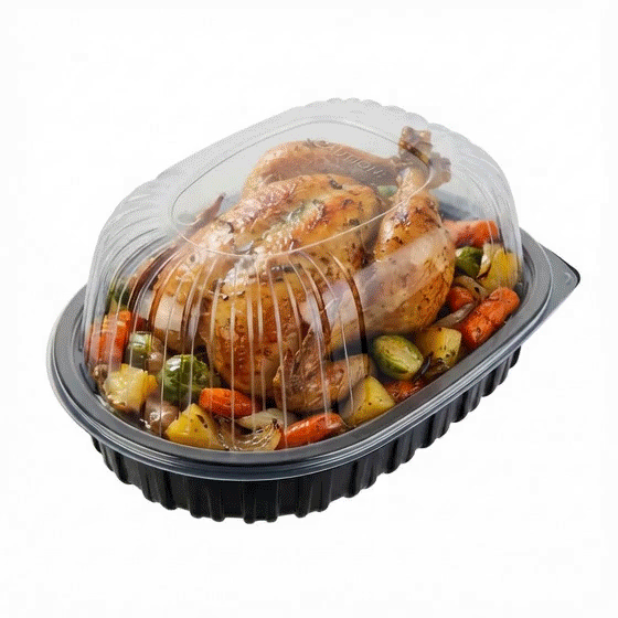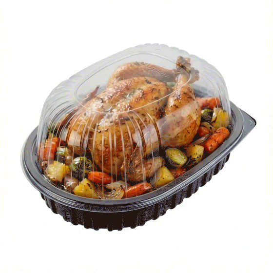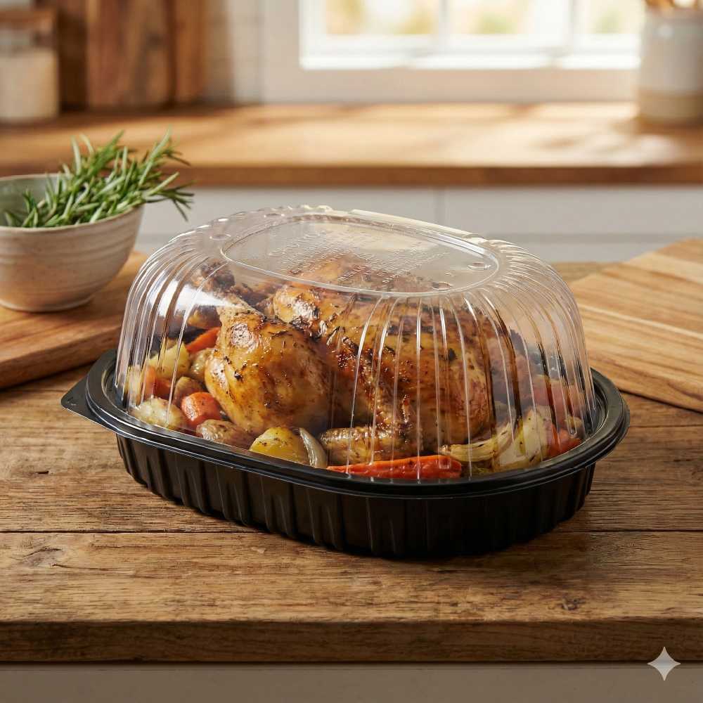 BLACK PLASTIC CHICKEN ROASTER CONTAINER - WITH CLEAR DOME LID