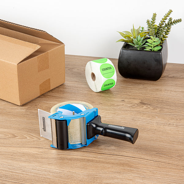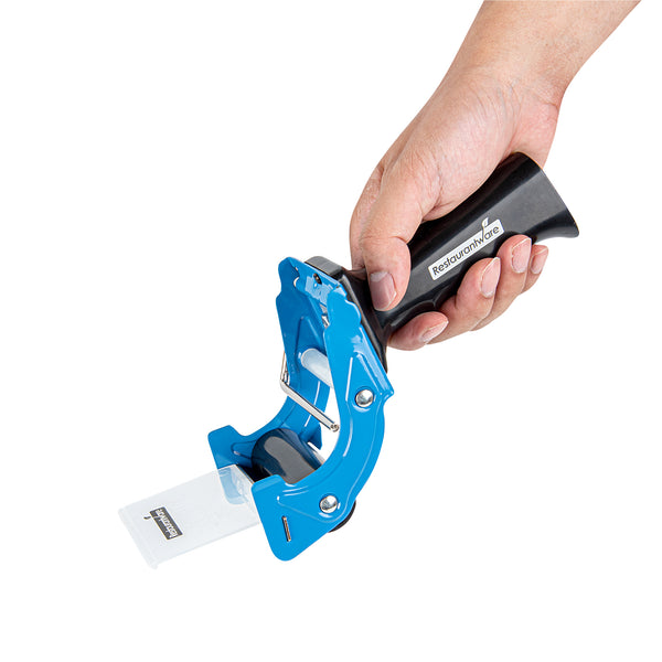 Revolutionize your packing process with our Chef 101 Blue Heavy-Duty Tape Dispenser Gun. Constructed with a premium rubber handle and an ergonomic pistol grip, this iron tape dispenser provides a secure grip and lessens fatigue during long-term operation. This packaging tape dispenser simplifies your packing tasks by handling up to 3-inch tape width and featuring an effortless-to-load mechanism. Integrated with a smoothing roller, this packaging tape dispenser ensures a flawless and neat cut every time you use it. The modifiable tension knob on this tape gun is readily attuned to your distinctive needs, offering you complete authority over your package sealing strength. With dimensions of 10.25 inches in length by 3.5 inches in width by 4.25 inches in height, this functional blue handheld tape dispenser effortlessly combines style and space-efficient storage. Sold in a 1 count box.