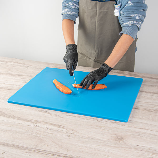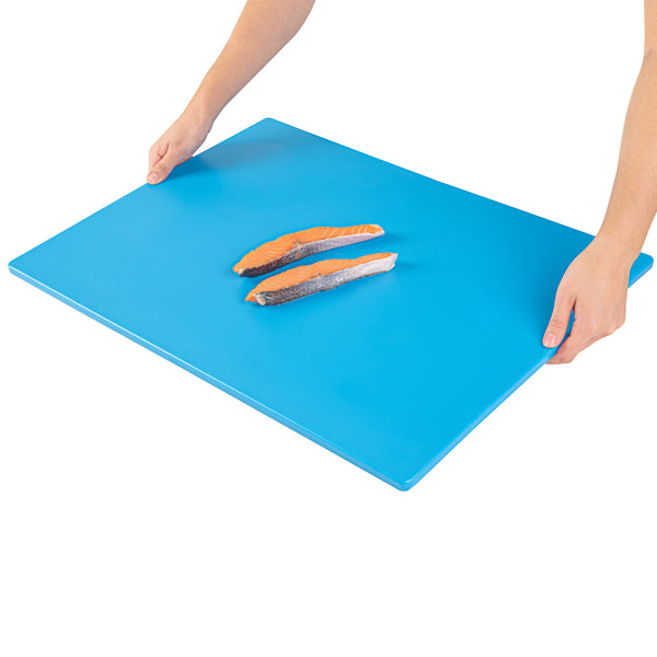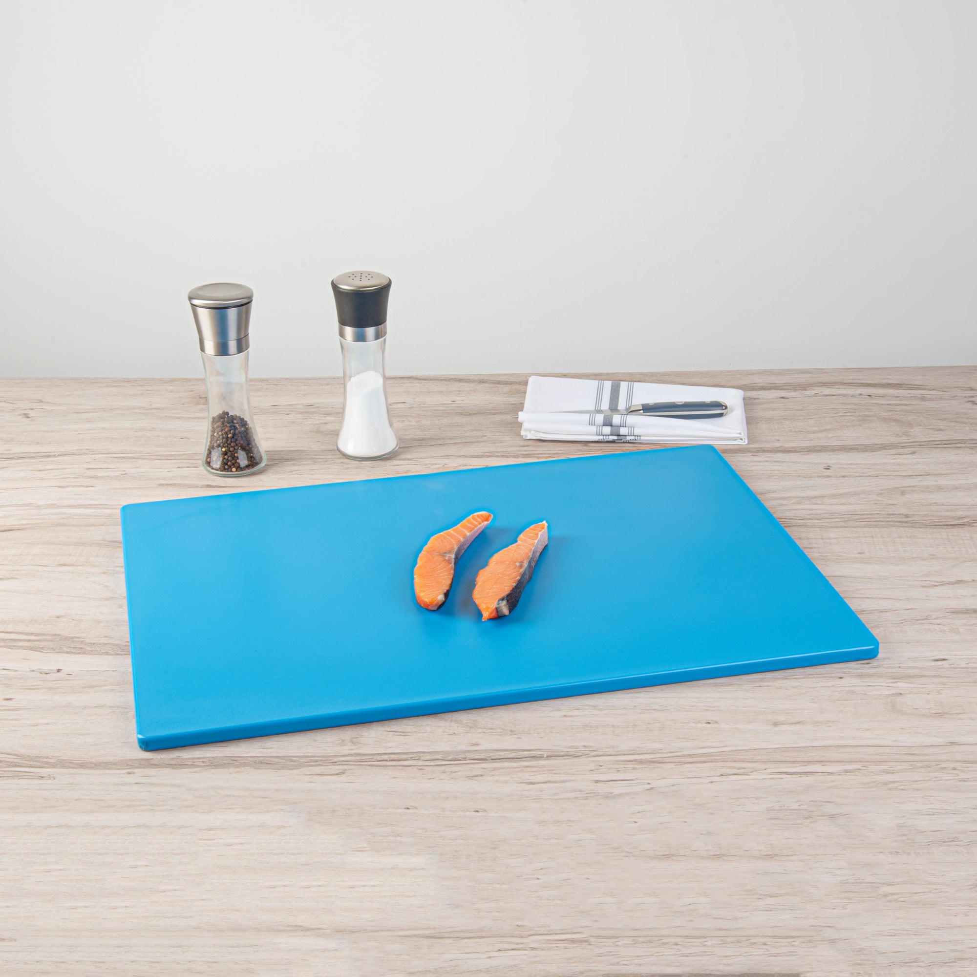 These color-coded cutting boards establish a system of assigning red to raw meats, green to fruits and vegetables, and yellow to poultry significantly increases cleanliness and enables the kitchen staff to quickly identify and use the correct board for each food type. These cutting boards come in different colors to comply with the HACCP standards.