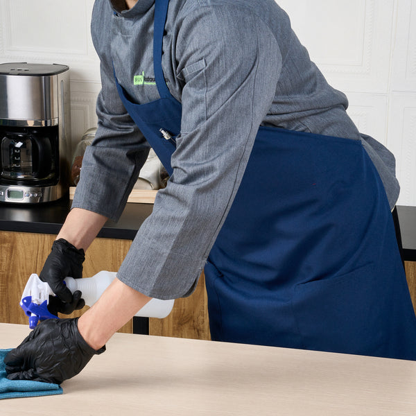 - Bib-design offers superior coverage, preserving cleanliness in high-paced kitchens