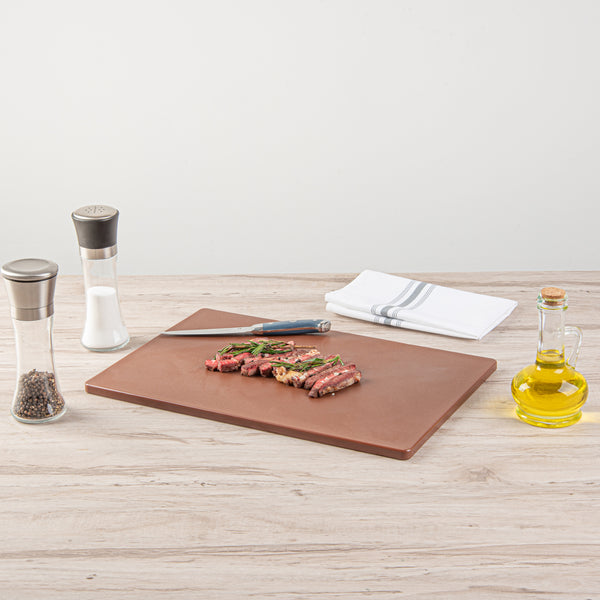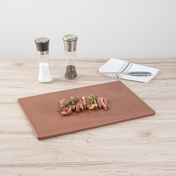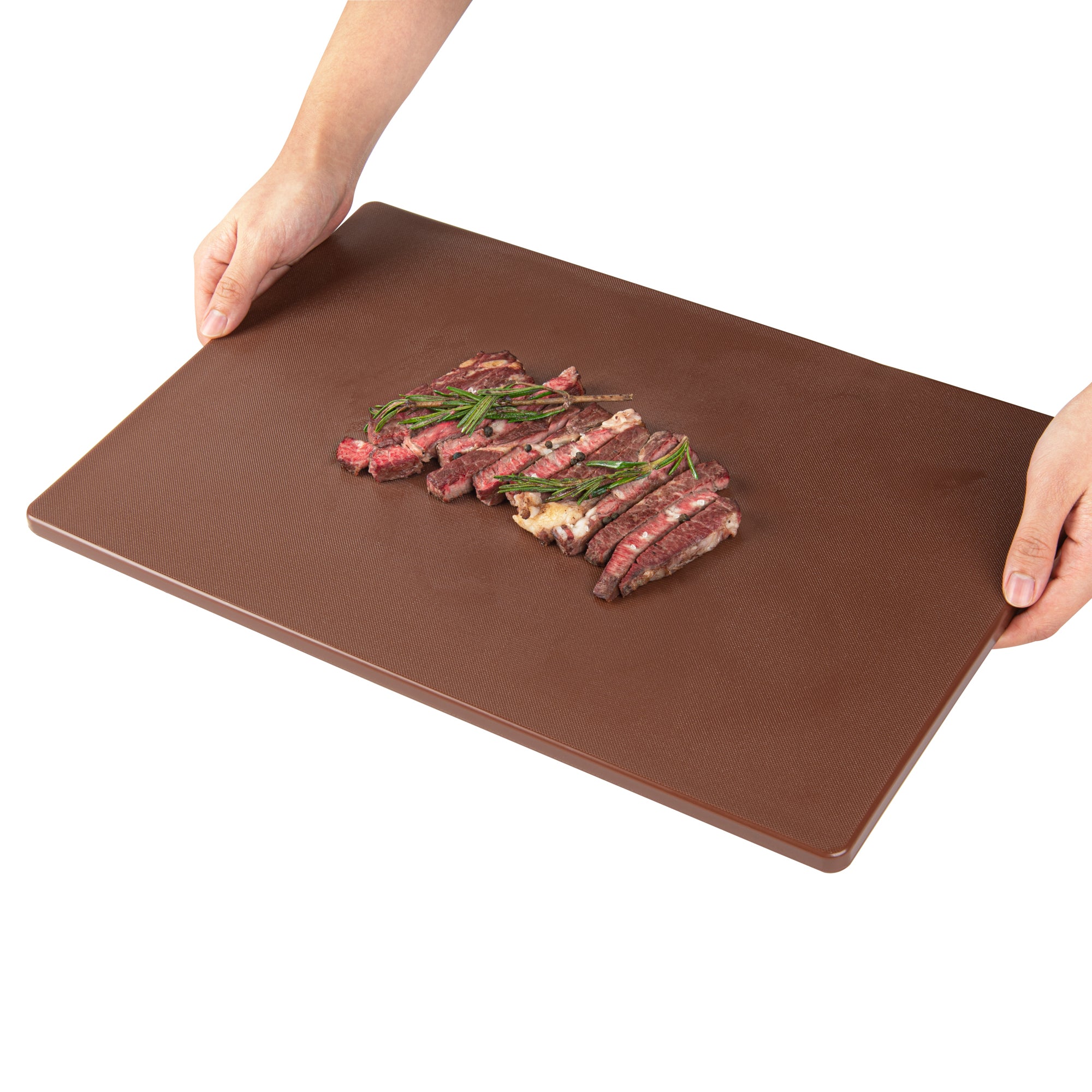 These color-coded cutting boards establish a system of assigning red to raw meats, green to fruits and vegetables, and yellow to poultry significantly increases cleanliness and enables the kitchen staff to quickly identify and use the correct board for each food type. These cutting boards come in different colors to comply with the HACCP standards.