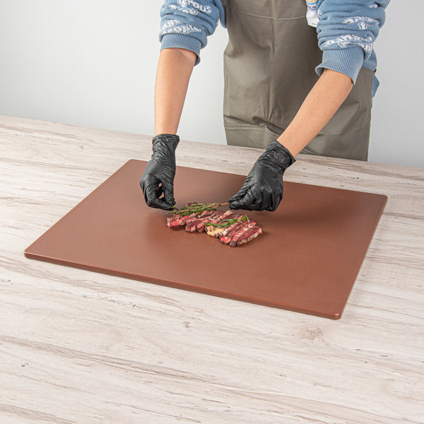 These color-coded cutting boards establish a system of assigning red to raw meats, green to fruits and vegetables, and yellow to poultry significantly increases cleanliness and enables the kitchen staff to quickly identify and use the correct board for each food type. These cutting boards come in different colors to comply with the HACCP standards.