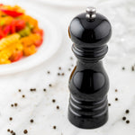 Enhance the flavors of meals with our Chef 101 Classic French Black Wood Pepper Mill. With a high gloss finish, this black pepper grinder brings sophisticated flair to table settings and beautifully complements the modern decor at your foodservice establishment. This black pepper mill features an adjustable knob that allows you to easily adjust the grind to create coarse or fine ground pepper for recipes. With a ceramic grinding mechanism, this corrosion-resistant pepper grinder is built to maintain its sharpness to consistently grind uniformed and flavorful pepper. This wooden pepper mill is naturally durable to sustain its premium design for long-lasting use at your restaurant, cafe, or bar. Measuring 2 inches in diameter and 6 inches in height, this French pepper mill easily grinds peppercorns to add rich flavor and aroma to meat, fish, salad, and other meals. Shipped in a 1 count box.