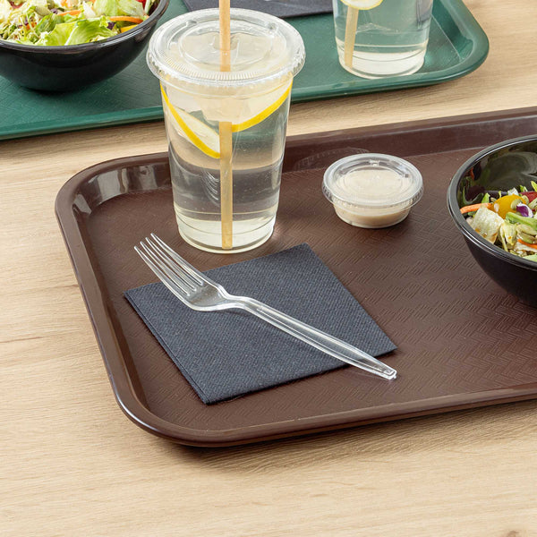 Easily grip and lift your delicious foods with our Chef 101 Clear Plastic Forks. These high-quality forks feature a durable construction that works to resist cracking and bending during use. With a durable plastic construction, these black plastic forks work great with wet and dry foods. Easily recyclable, these sustainable forks reduce your carbon footprint. Designed with a mesmerizing crystal-clear finish, these plastic utensils can be easily dressed up or dressed down for any occasion. Measuring 7 inches in length, these full-size plastic forks elevate the look of any tablescape or place setting. Shipped in a 250 count box.