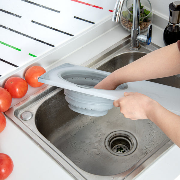 To easily store your sink cutting board, the strainer is effortlessly removable and collapsible. You can even use this collapsible strainer as a colander!