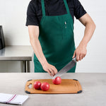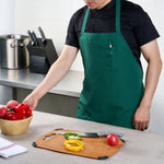 Elevate your staff's uniform with our Chef 101 Green Standard Bib Apron. Equipped with three spacious patch pockets on the front, this work apron is perfect for holding all service or kitchen supplies. Featuring a bib-inspired design, this apron with pockets provides ample coverage and protection, ensuring your clothes stay clean. The mid-length design of this server apron offers excellent mobility, allowing you to move freely and comfortably while protecting your clothes. Made from durable polyester, this waitress apron is wrinkle-resistant and withstands daily wear and tear, maintaining a professional appearance even after frequent washes. The back ties on this waiter apron offer a customizable fit, ensuring that the apron stays securely in place while allowing for easy adjustments. Machine washable for easy maintenance, this green apron is designed to withstand frequent laundering while retaining its color and shape. The green color of this bib apron ensures a fresh, fun presentation that is great for front or back-of-the-house use. Measuring 32.48 inches in length by 27.56 inches in width, this green polyester apron offers ample coverage without sacrificing comfort. Sold in a 1 count box.