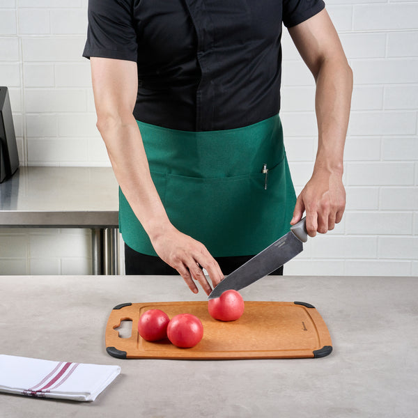 Enhance your staff's appearance and functionality with our Chef 101 Green Standard Waist Aprons. Designed with three spacious front patch pockets, these work aprons are ideal for holding all service or kitchen supplies. The quick ties of these aprons with pockets allow for effortless wear and removal, saving time in busy environments. Designed with a shortened length, these server aprons ensure convenient coverage while providing greater freedom of movement. Made from a durable poly-cotton blend, these waist aprons retain shape and resist wrinkles through multiple washings. The back ties of these bartender aprons offer a customizable fit, keeping the apron securely in place with easy adjustments. Machine washable for hassle-free maintenance, these green aprons stand up to frequent laundering while maintaining their color and shape. The vibrant green color of these waitress aprons adds a fresh, fun look, making them perfect for front and back-of-the-house use. Measuring 24 inches in length by 12 inches in width, these waiter aprons provide ample coverage without sacrificing comfort. Sold in a 100 count box.