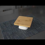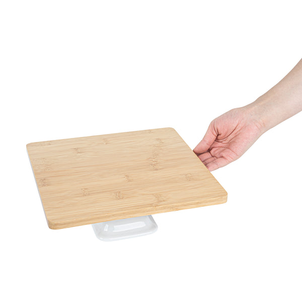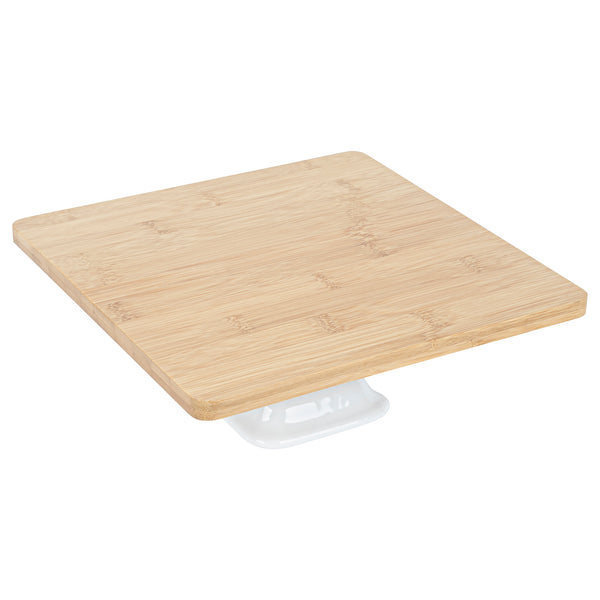 SQUARE BAMBOO SERVING STAND - WITH PORCELAIN BASE
