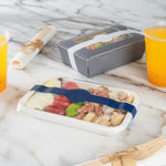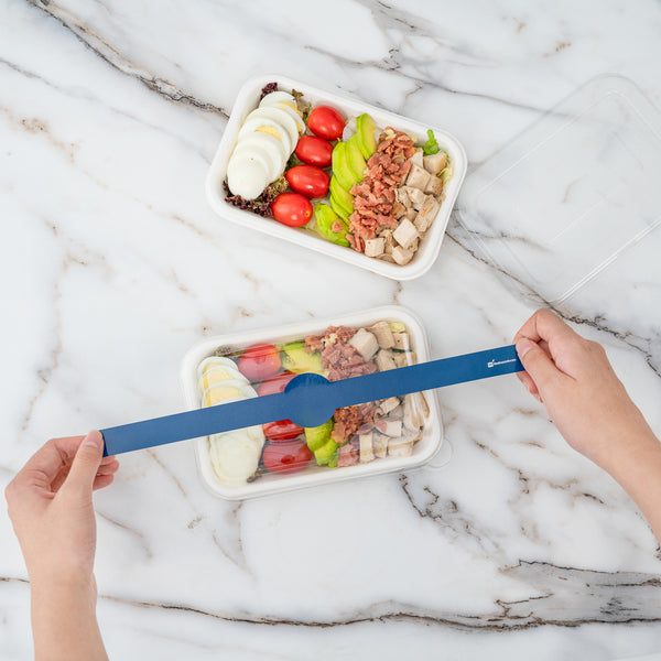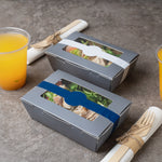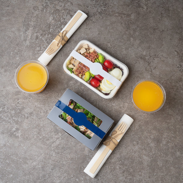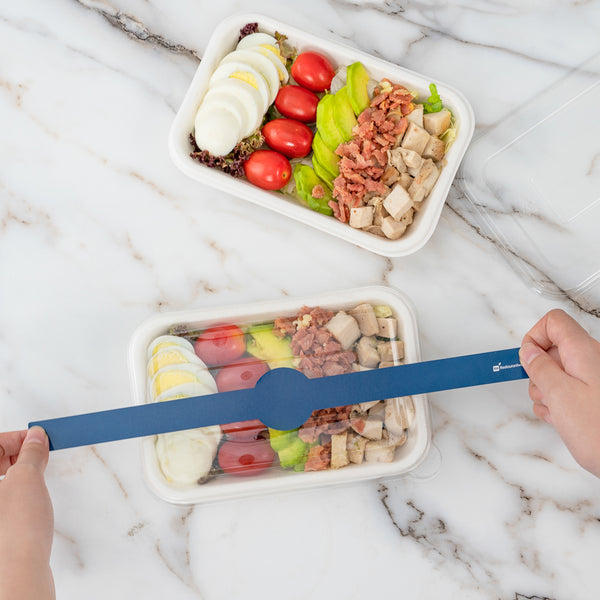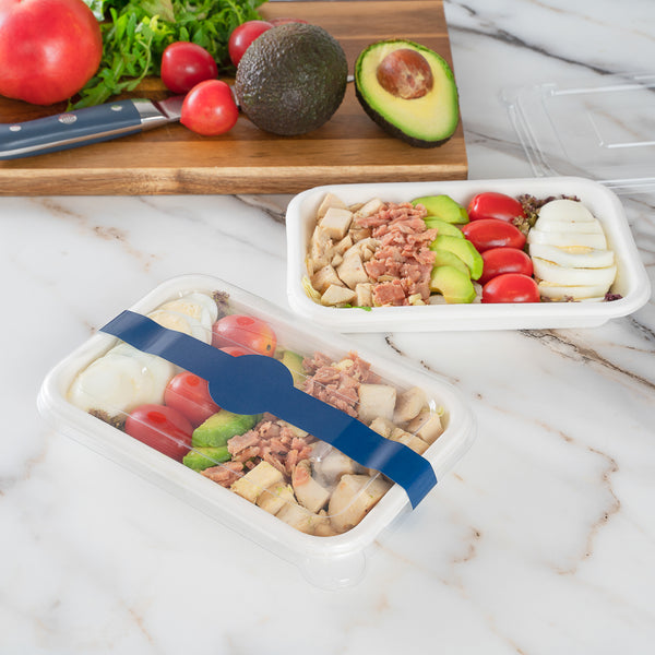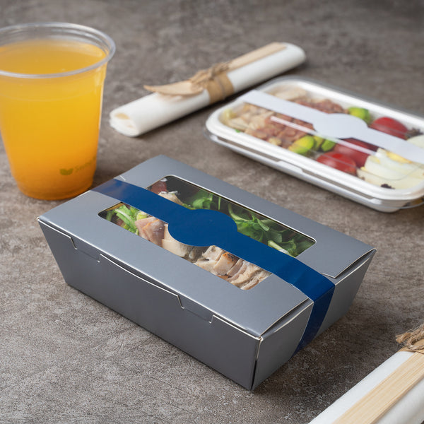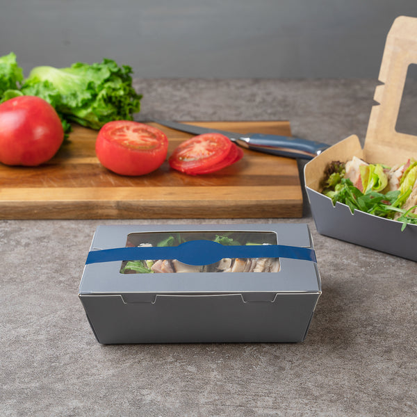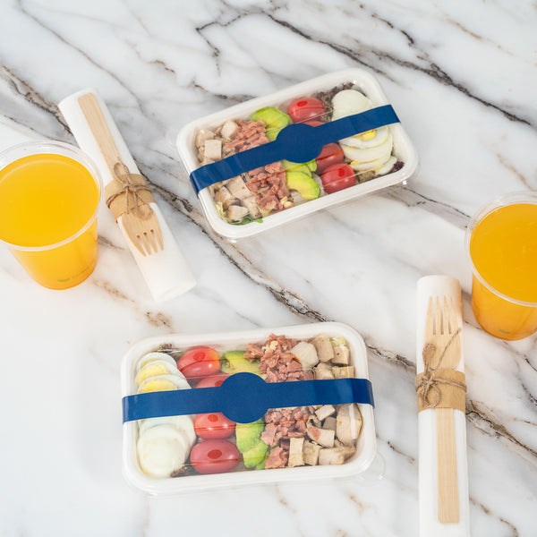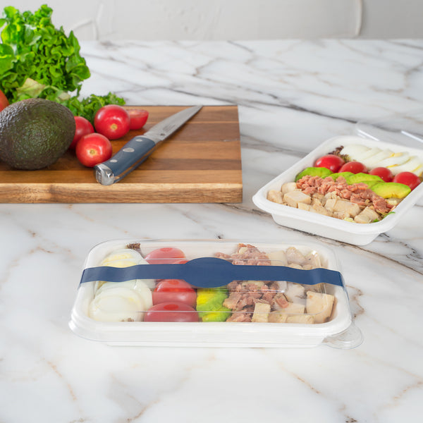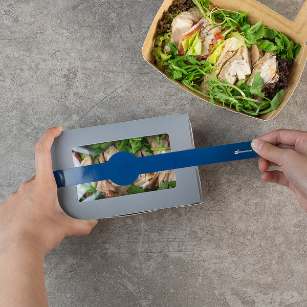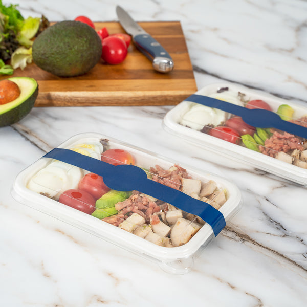Use our Chef 101 Round Midnight Blue Paper Packaging Bands to give your take out packaging a stylish edge. Featuring a self-adhesive sticker on the back, these belly bands make it easy to secure your containers and lid to avoid messy accidents during transport. These belly bands for packaging firmly stick to take out boxes to keep them from peeling off and eliminate the need for additional adhesive. With a midnight blue finish, these container bands complement your brand's color scheme and enhance the perceived value of take out or grab-and-go meals. Measuring 12 inches in length by 1.5 inches in width, these self-adhesive bands can hold together different sized containers from our Pulp Tek, Cafe Vision, and Asporto collections. These belly bands arrive in a sheet to maintain the strength of their adhesive. Sold in a 100 count box.