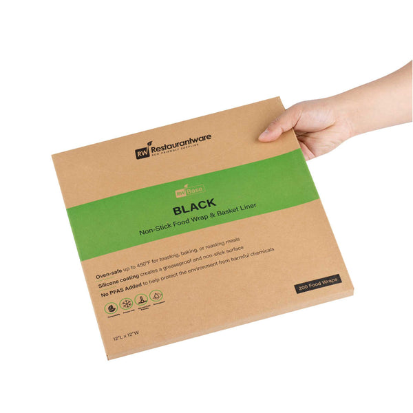 Present your food items elegantly with our Chef 101 No PFAS Added Black Paper Bakery Wraps and Basket Liners. Sporting a premium paper construction with no added PFAS, these food wraps guarantee longevity and reliability, making them perfect for a wide range of food items. With an added layer of greaseproof silicone coating, these taco paper wraps ensure your food stays clean and fresh. Plus, the classy black finish of these deli papers lends a professional and appealing look. Enjoy the convenience of versatile food packaging that is freezable with these sandwich wrap papers, perfect for preserving the freshness of your meals. These bakery wraps are not only disposable but also reprocessable, promoting a sustainable approach to foodservice. Precut to a generous size of 12 inches in length by 12 inches in width, these basket liners accommodate a wide range of food sizes and types, making them an essential accessory in any foodservice establishment. Sold in a 200 count box.