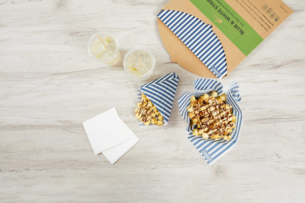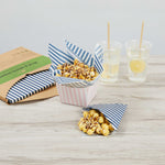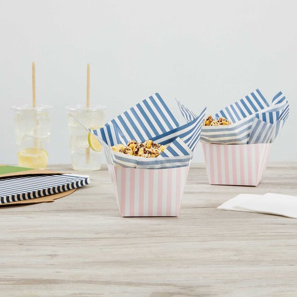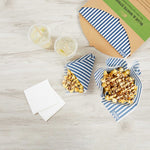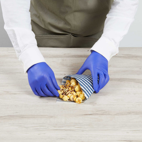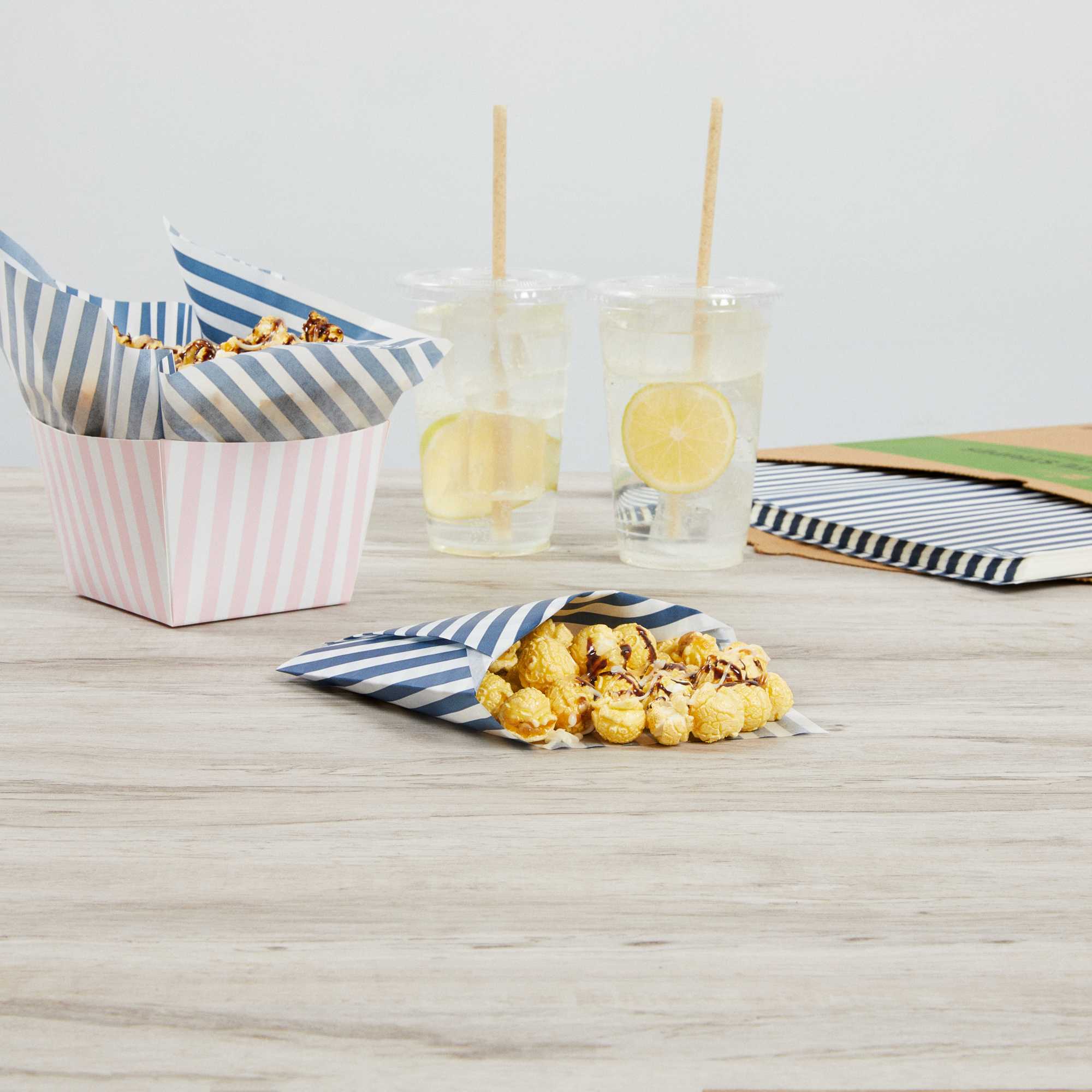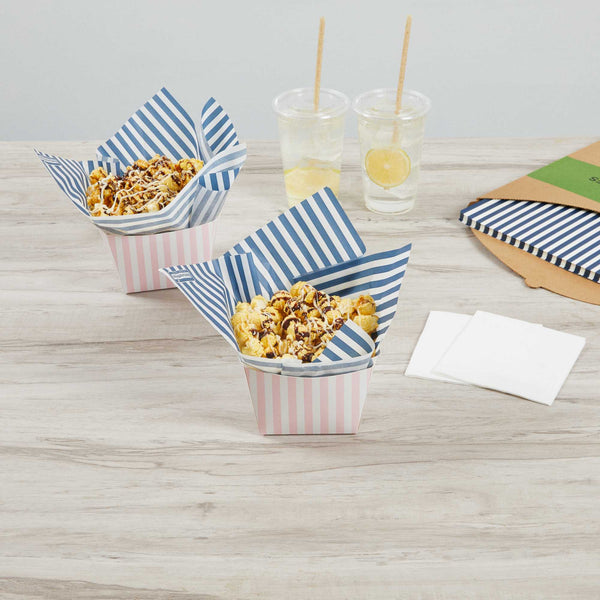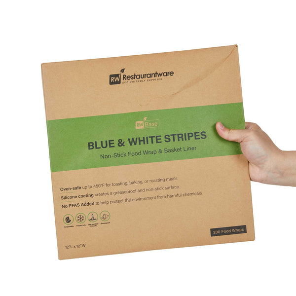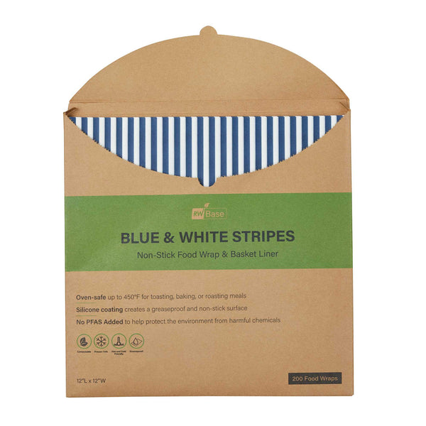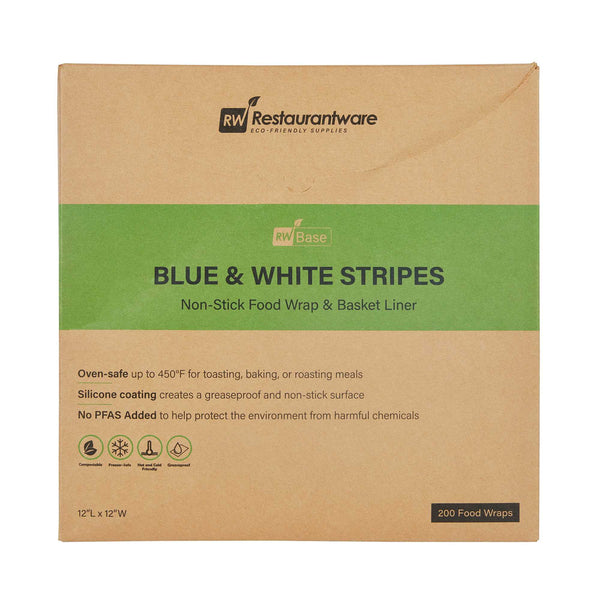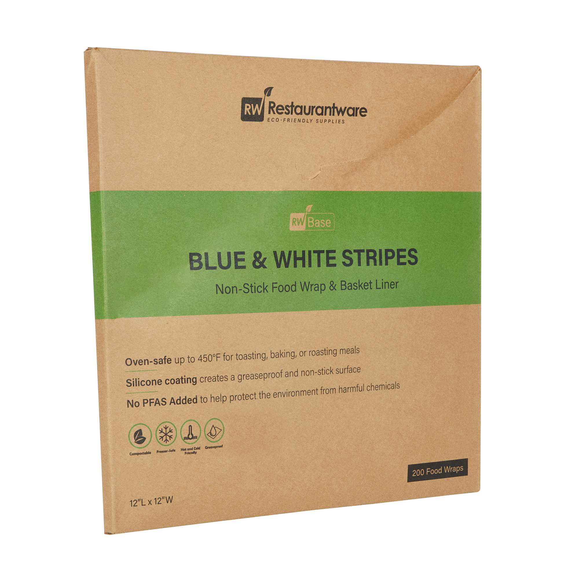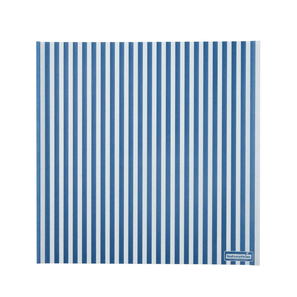 Elevate your dining experience using our Chef 101 No PFAS Added Blue and White Stripe Paper Bakery Wraps and Basket Liners. These food wraps boast a durable paper construction without added PFAS, ensuring a secure and sustainable option for your customers. With a greaseproof silicone coating, these taco paper wraps stop messes and maintain the quality of your dishes. These deli papers are freezable, allowing you to store your leftovers. With a pre-cut style, these reprocessable sandwich wrap papers can easily be used for wrapping sandwiches, lining baskets, or even as bakery wraps. Measuring 12 inches in length by 12 inches in width, these disposable basket liners offer ample space for all your delicious creations. Sold in a 2,000 count box.