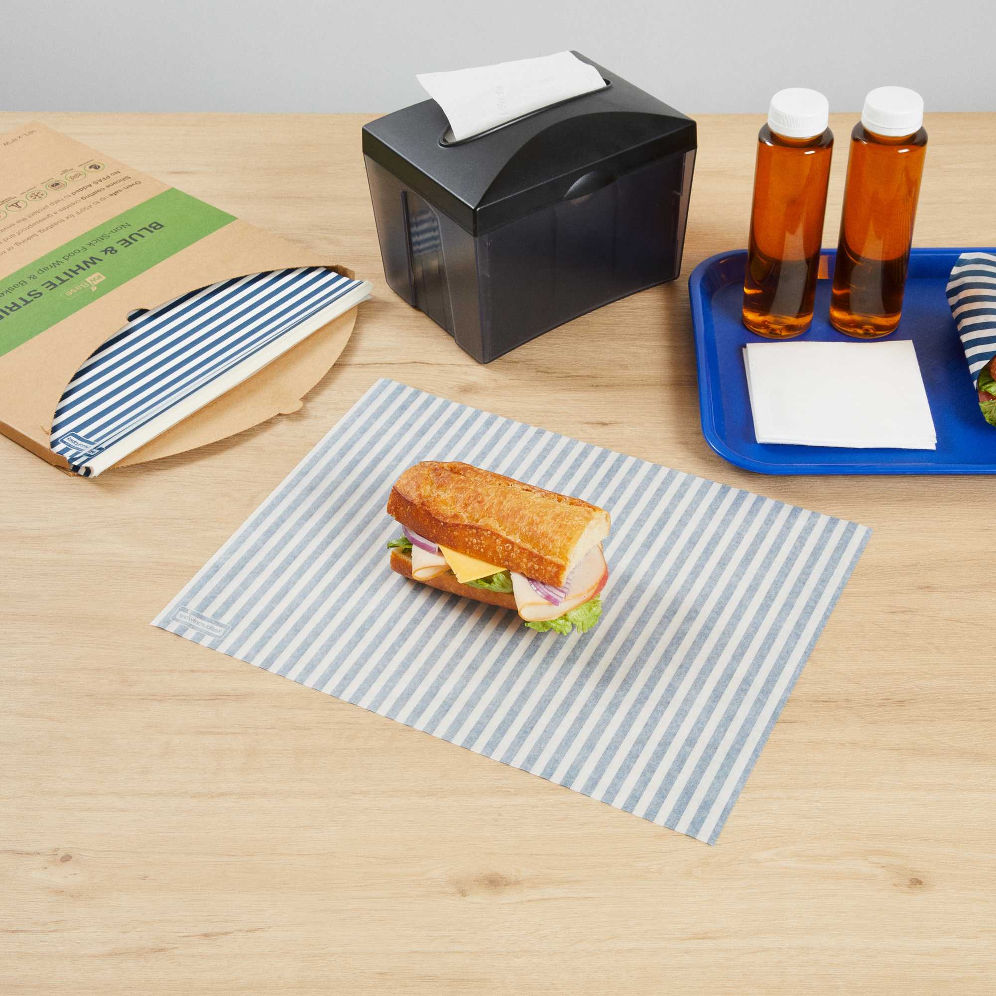 NO PFAS ADDED BLUE AND WHITE PAPER FOOD WRAP AND BASKET LINER