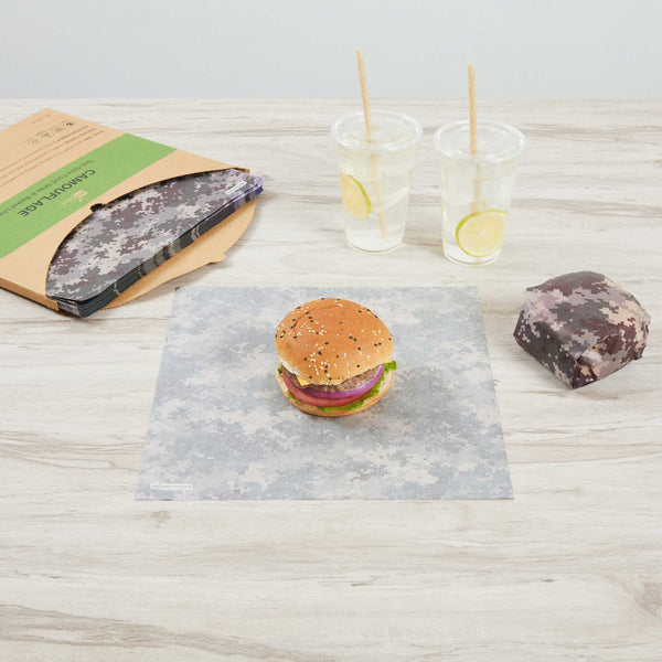 NO PFAS ADDED CAMOUFLAGE PAPER BAKERY WRAP AND BASKET LINER