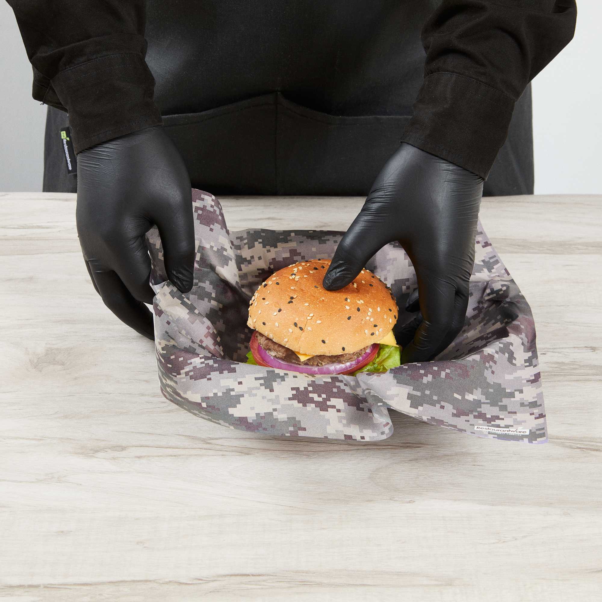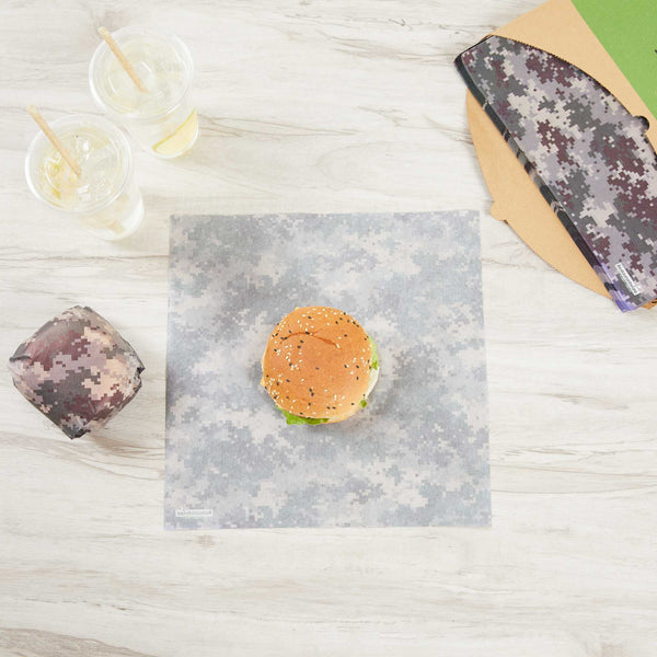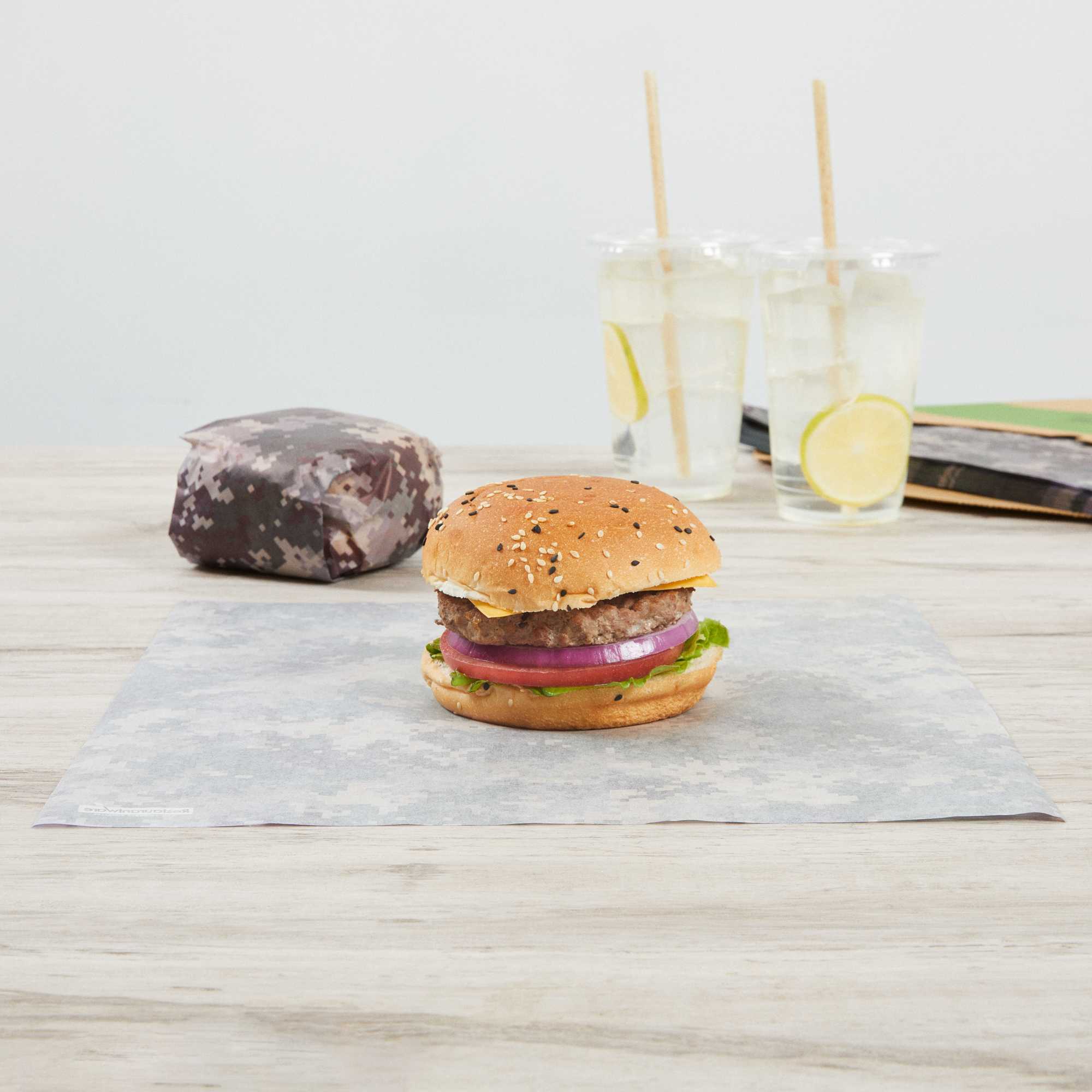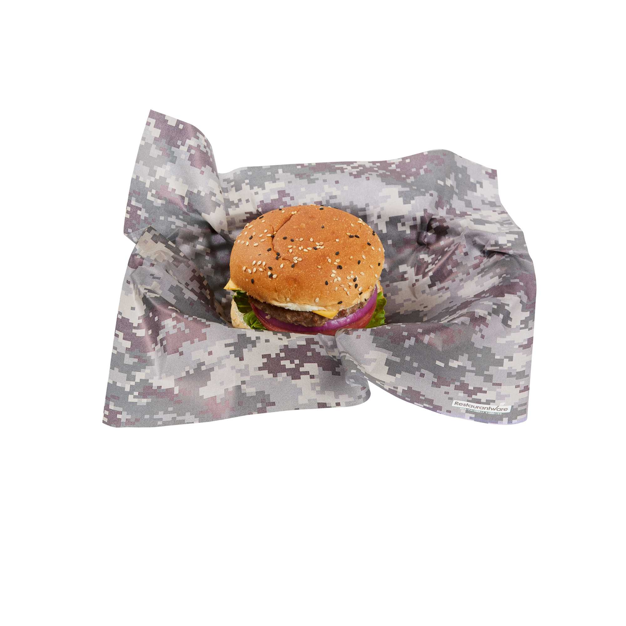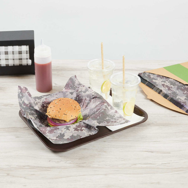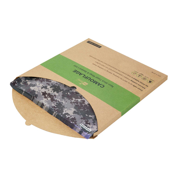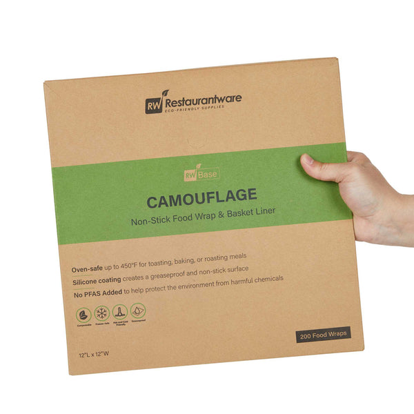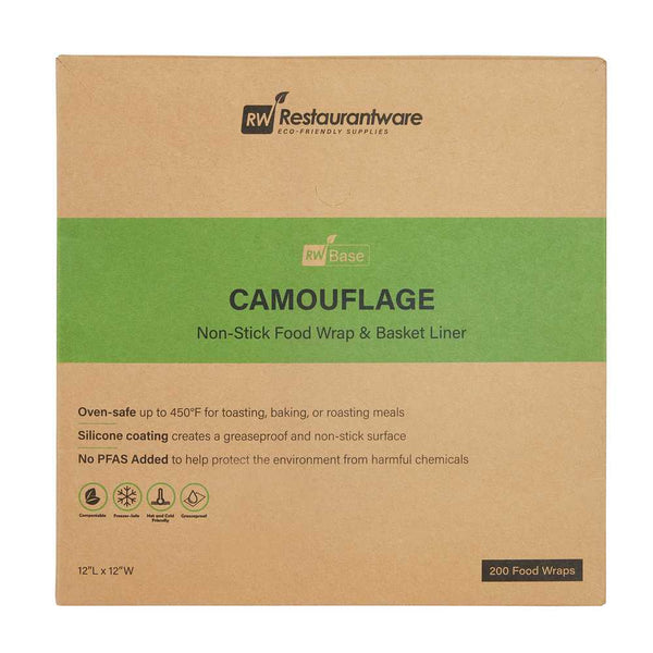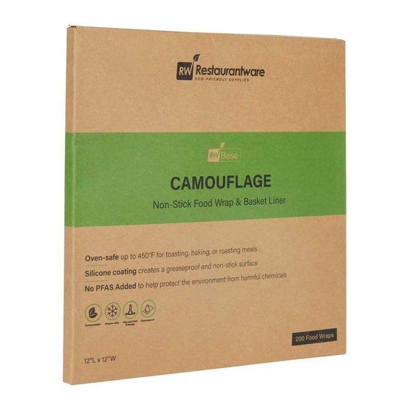 Present your culinary creations in style with our Let our Chef 101 No PFAS Added Camouflage Paper Bakery Wrap and Basket Liners. These food wraps are crafted with premium paper and have no added PFAS, assuring a healthy choice for your customers. With a greaseproof silicone coating, these taco paper wraps effectively avoid oil and grease stains, maintaining the integrity and presentation of your food. The camouflage design of these deli papers enhances the visual appeal of your meals. Freezable, these sandwich wrap papers provide the versatility to serve hot or cold meals with the same convenience. Conveniently disposable and recyclable, these bakery wraps make clean up a breeze. These pre-cut basket liners measure 12 inches in length by 12 inches in width and are ideal for restaurants, cafes, bakeries, and food trucks. Sold in a 200 count box.