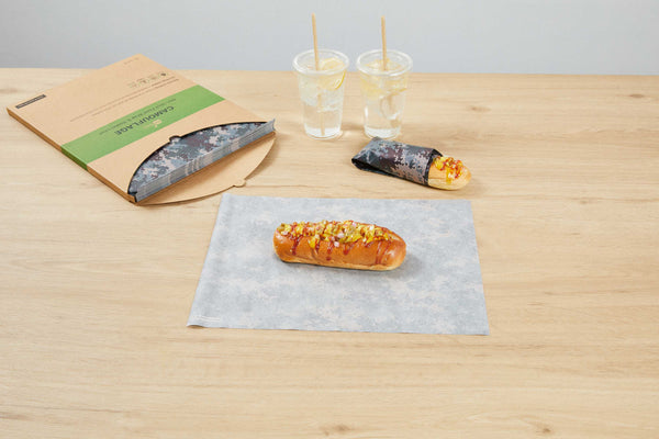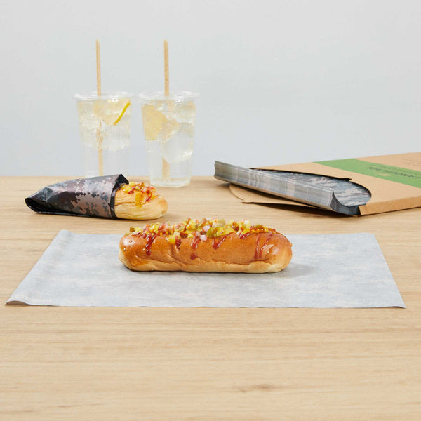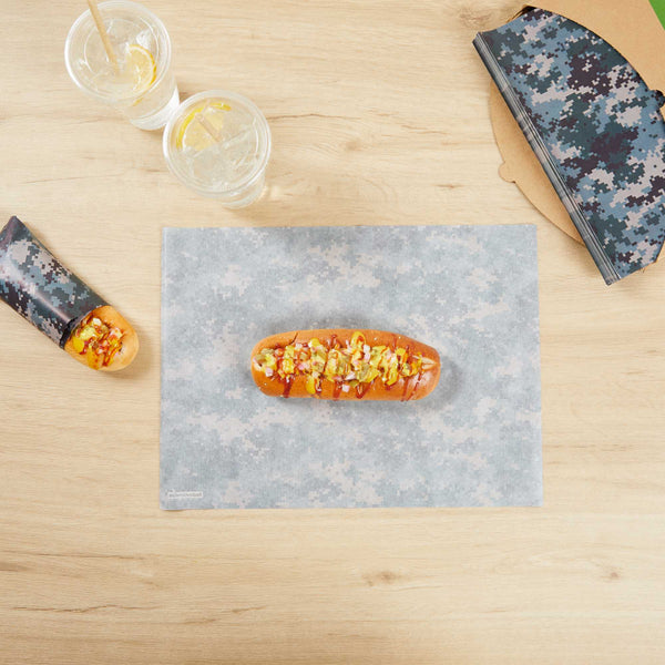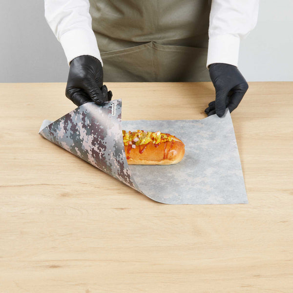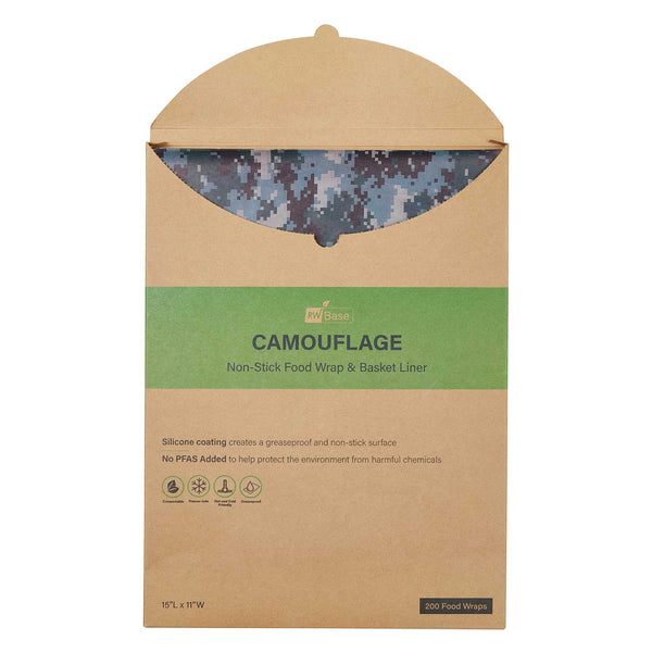 NO PFAS ADDED CAMOUFLAGE PAPER FOOD WRAP AND BASKET LINER