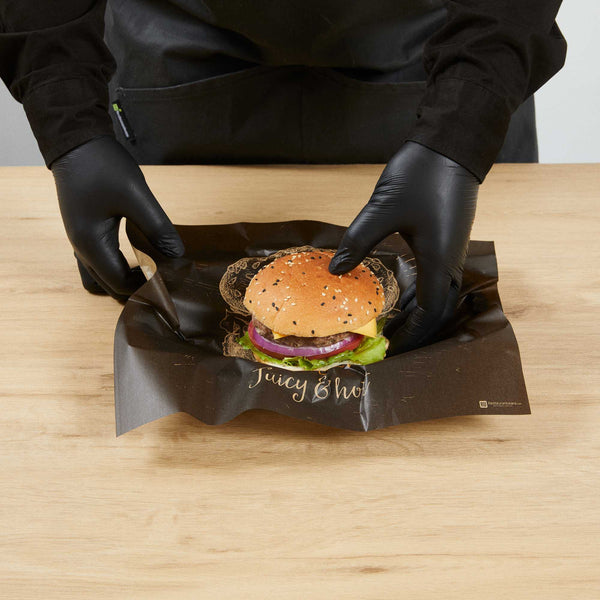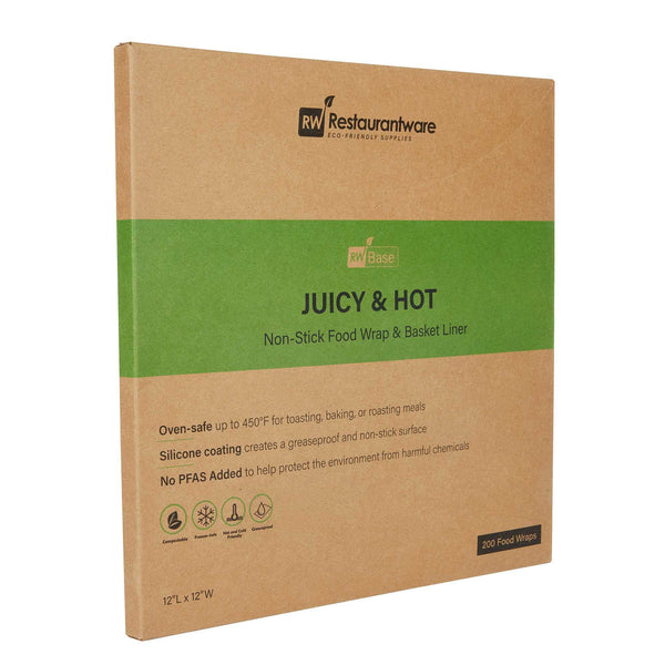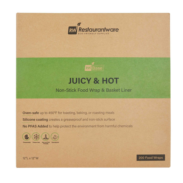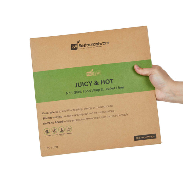 Enhance your food presentation with sophistication and sustainability. Chef 101 No PFAS Added Kraft Paper Burger Wrap and Fry Basket Liner features no PFAS added paper, offering a sustainable alternative for environmentally conscious foodservice operations. This burger wrap paper excels with its greaseproof properties, effectively preventing oily or saucy substances from seeping through, ensuring a cleaner service experience. The unique print on each 12-inch by 12-inch sheet elevates the aesthetic of your dishes, making it a standout choice for showcasing gourmet creations. Whether used as a fry basket liner or for wrapping burgers, this kraft paper wrap is designed to accommodate both hot and cold foods while being recyclable, aligning with eco-friendly practices. Choose this versatile paper for a sophisticated touch that impresses your customers. Sold in a 200 count box.