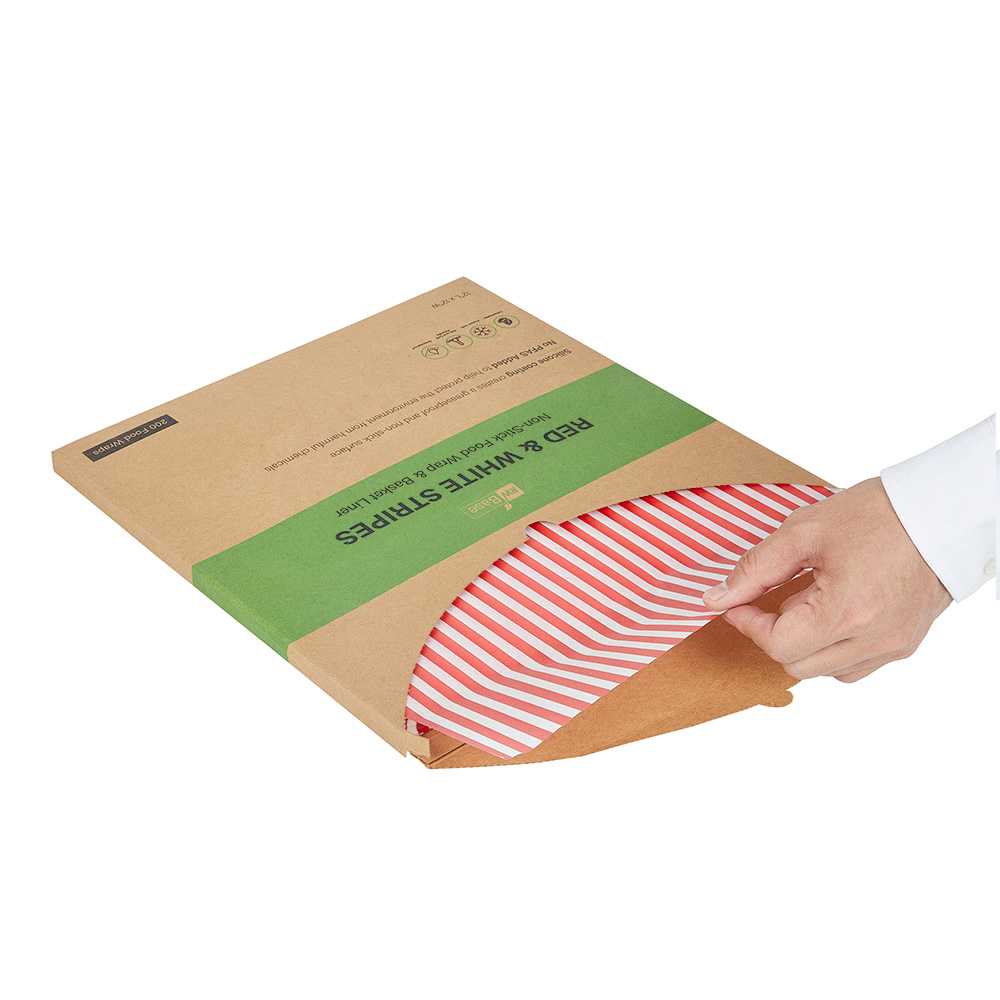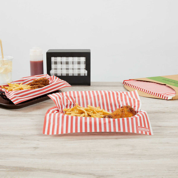 NO PFAS ADDED RED AND WHITE PAPER BAKERY WRAP AND BASKET LINER