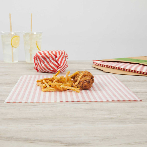 NO PFAS ADDED RED AND WHITE PAPER BAKERY WRAP AND BASKET LINER