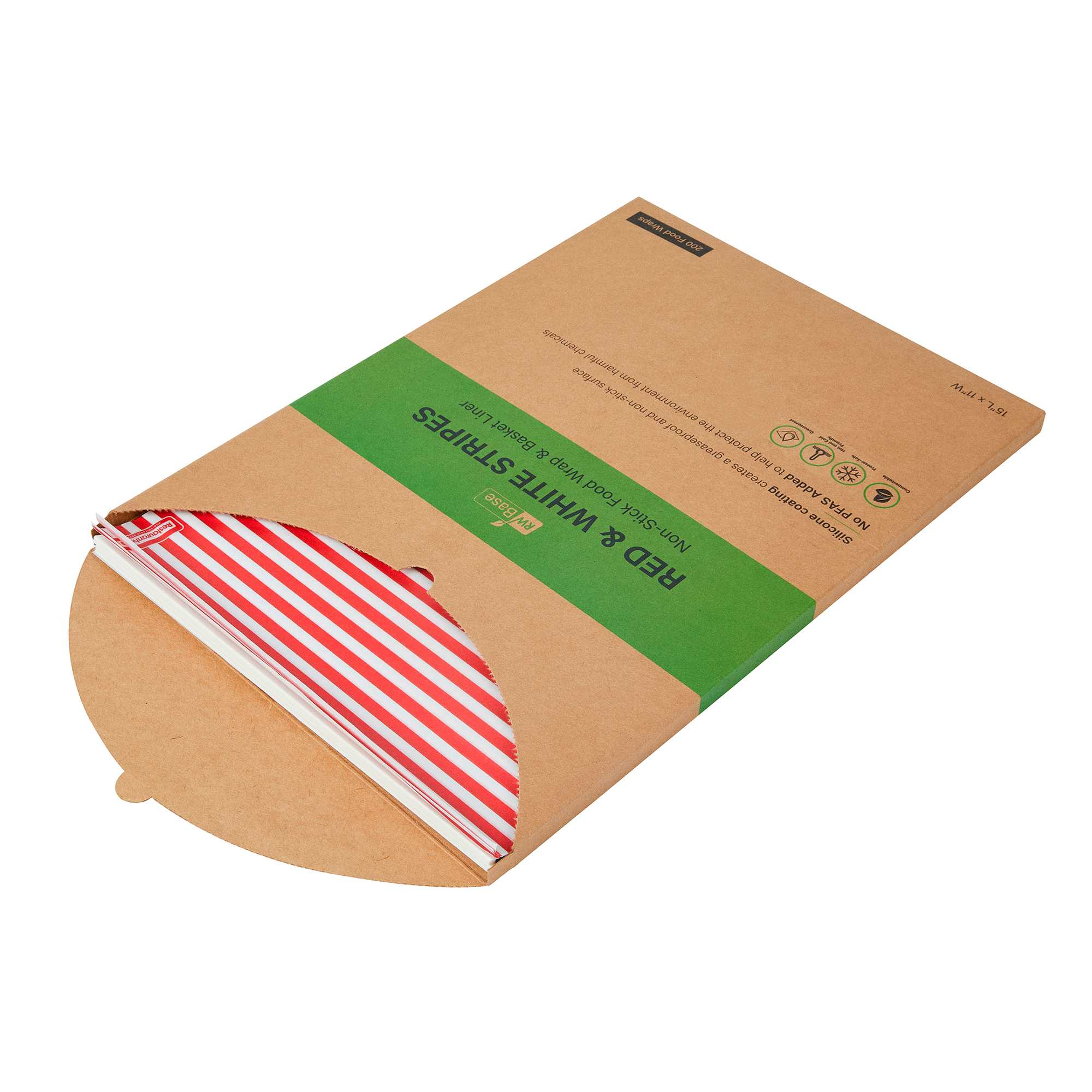NO PFAS ADDED RED AND WHITE PAPER FOOD WRAP AND BASKET LINER