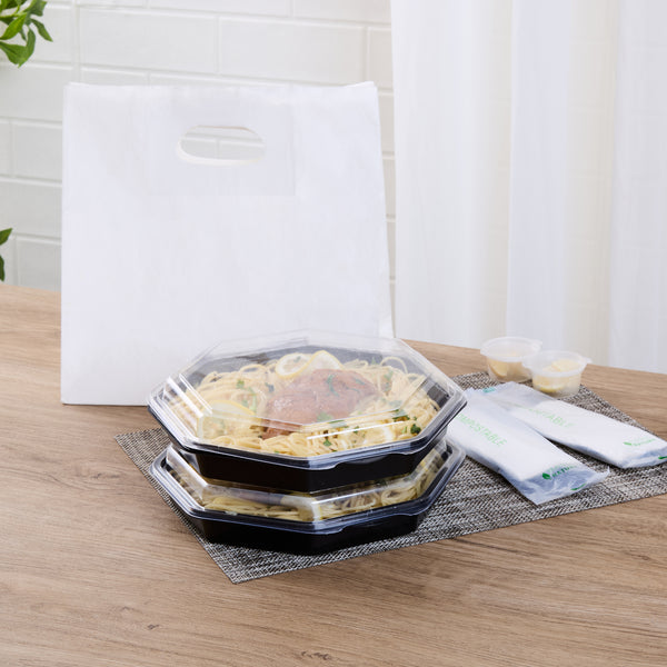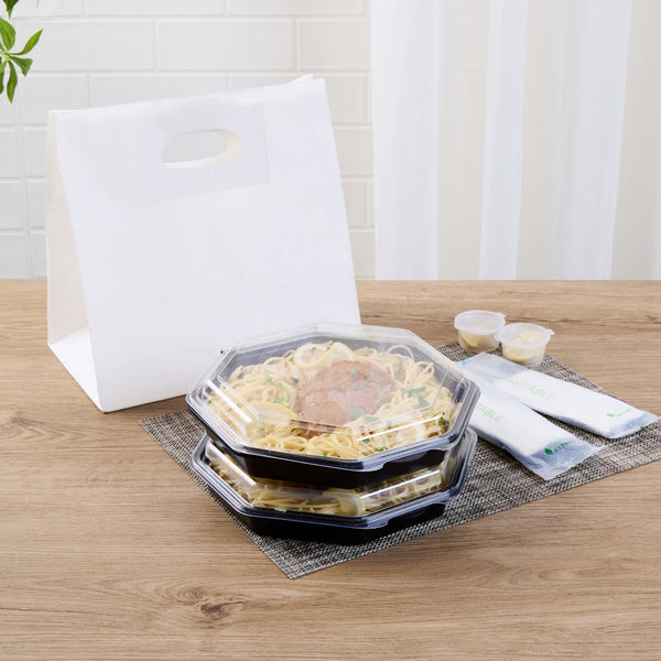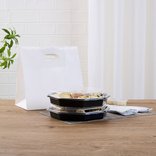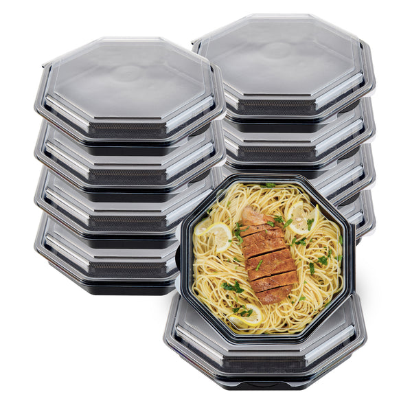 Ensure flawless takeout with leak-resistant plastic food containers. The Chef 101 Leak-Resistant Plastic Food Container, crafted from durable PET plastic, offers lasting quality essential for high-paced catering environments. Its secure snap-on lid container design maintains freshness and prevents spills during transport, enhancing customer satisfaction. The grease-resistant feature of these containers ensures takeout meals retain their freshness, making them ideal for busy restaurants and food delivery services. With a unique octagonal shape, this meal prep container sets your dishes apart, enhancing visual appeal and presentation. The freezer-safe construction preserves soups and sauces, maintaining taste and texture even when stored. Perfect for catering events and meal prep services, they offer a reliable solution that supports operational efficiency. Each order includes 100 Chef 101 Leak-Resistant Plastic Food Containers.