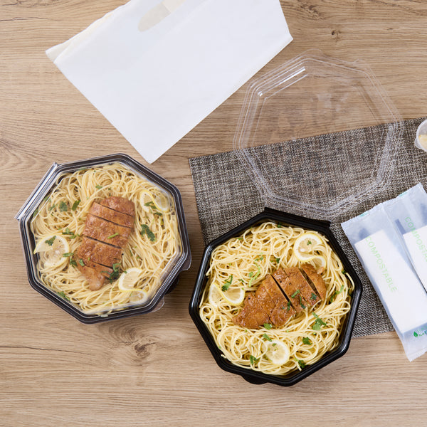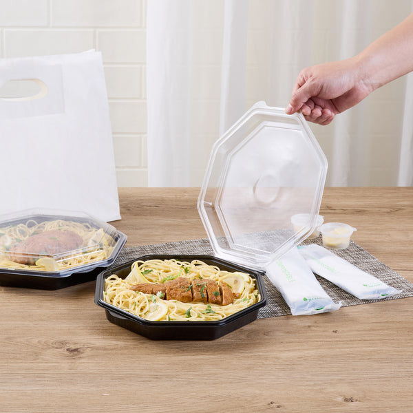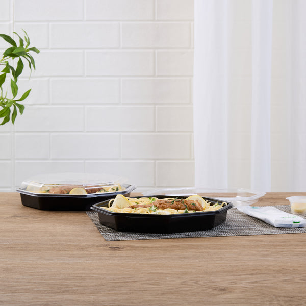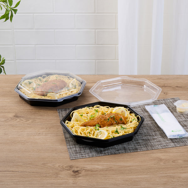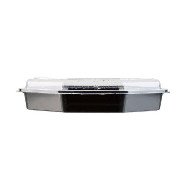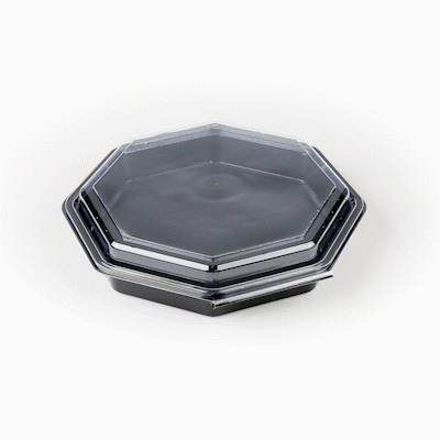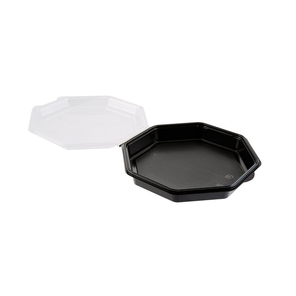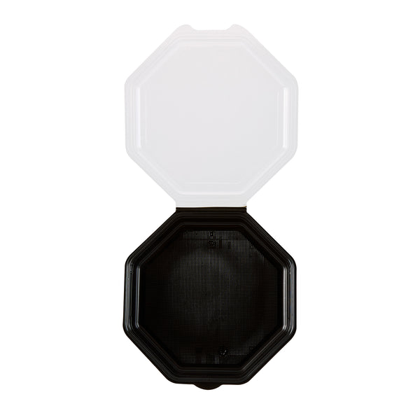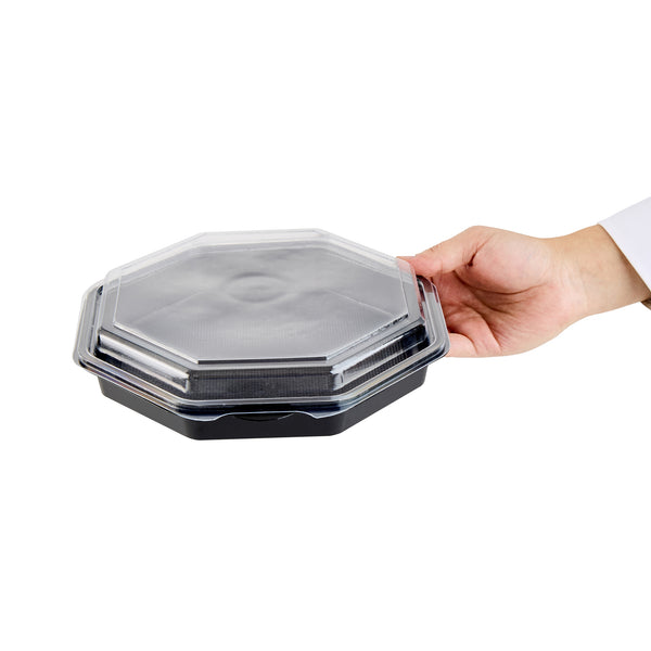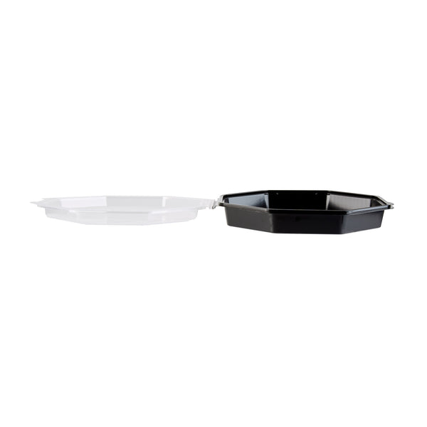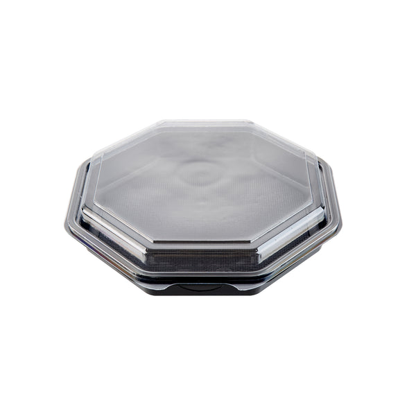 OCTAGON BLACK PLASTIC FOOD CONTAINER - WITH CLEAR LID