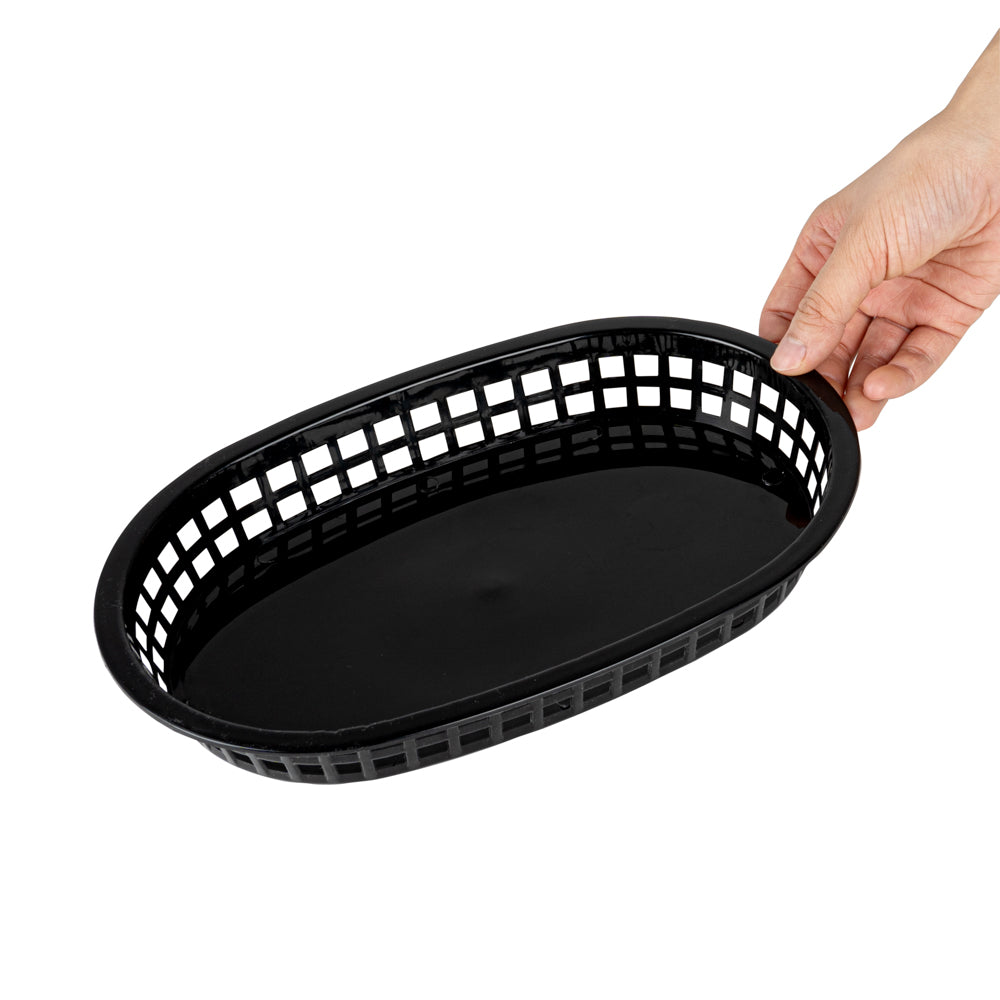 OVAL BLACK PLASTIC FAST FOOD SERVING BASKET