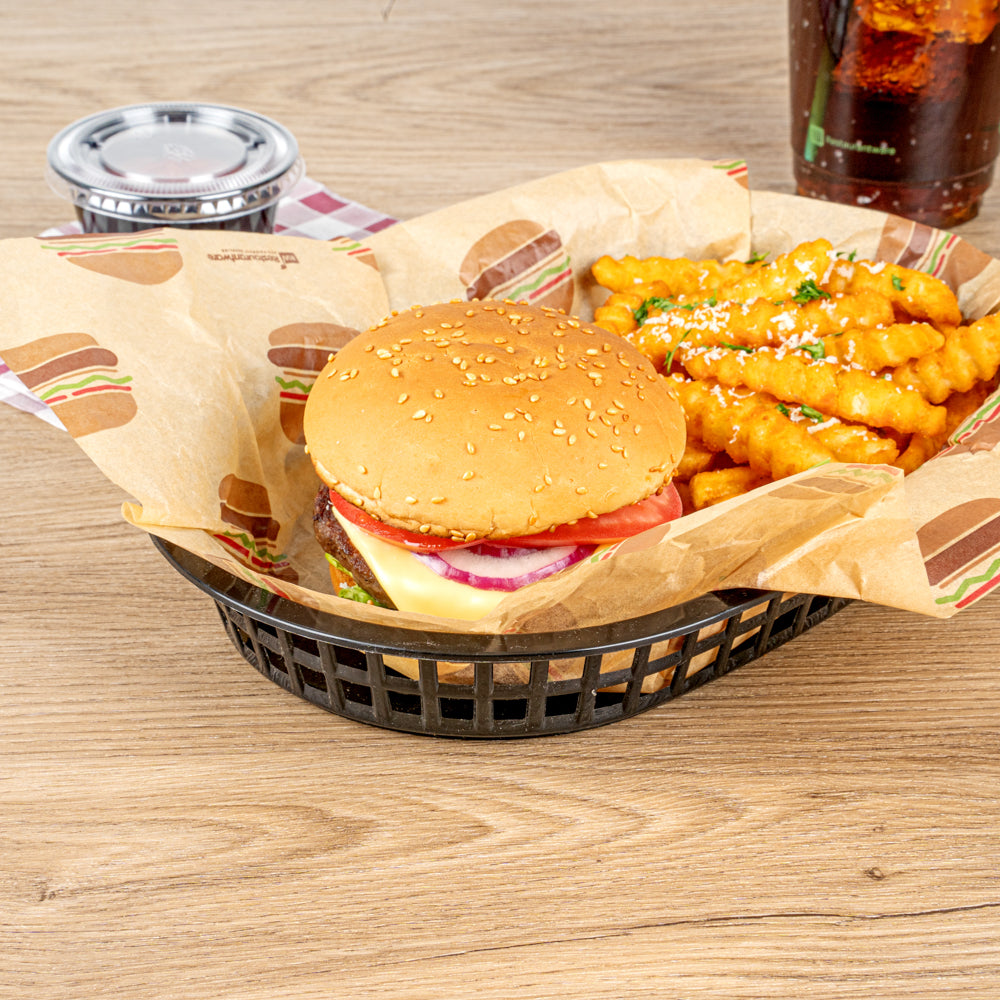These oval fast food baskets are convenient for guests and microwavable, allowing for easy heating of their orders. Plus, these baskets are perfect for serving warm appetizers, ensuring a delightful dining experience.