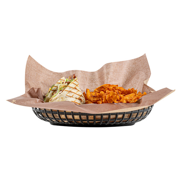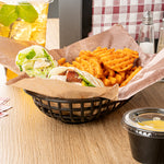 To add a charming touch and avoid any potential messes, you can coordinate these food baskets with our collection of basket liners. Effortlessly enhance the overall presentation of the food orders!