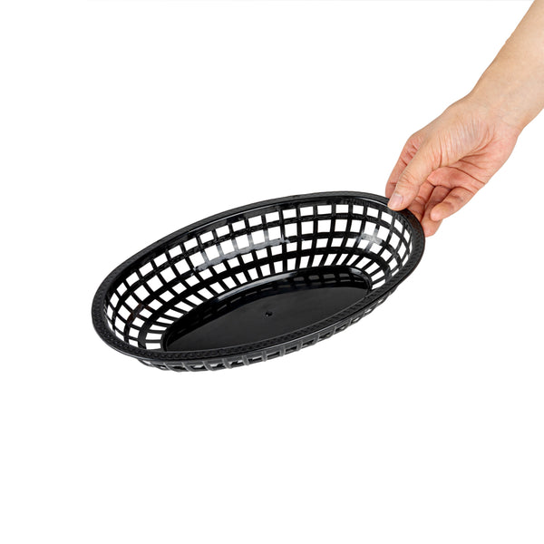 OVAL BLACK PLASTIC FAST FOOD SERVING BASKET