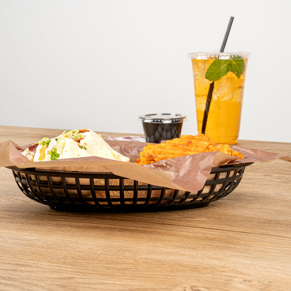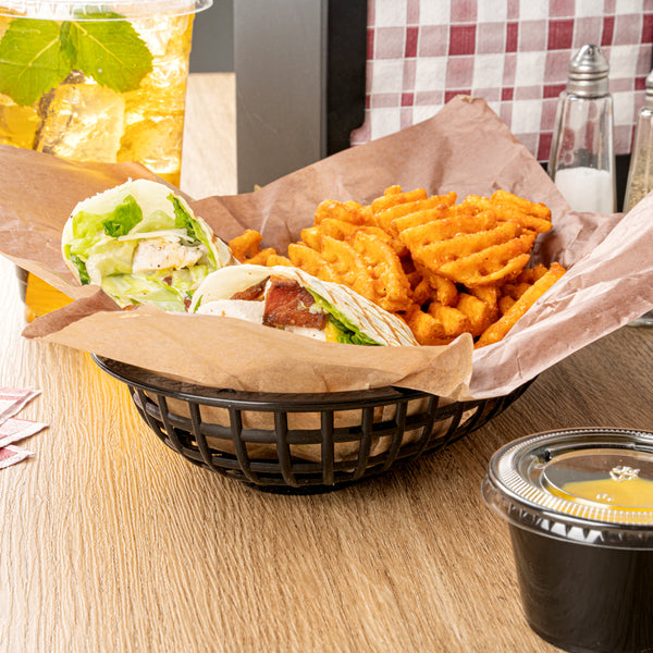 These oval fast food baskets are convenient for guests and microwavable, allowing for easy heating of their orders. Plus, these baskets are perfect for serving warm appetizers, ensuring a delightful dining experience.