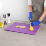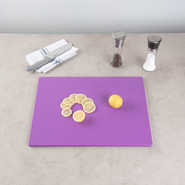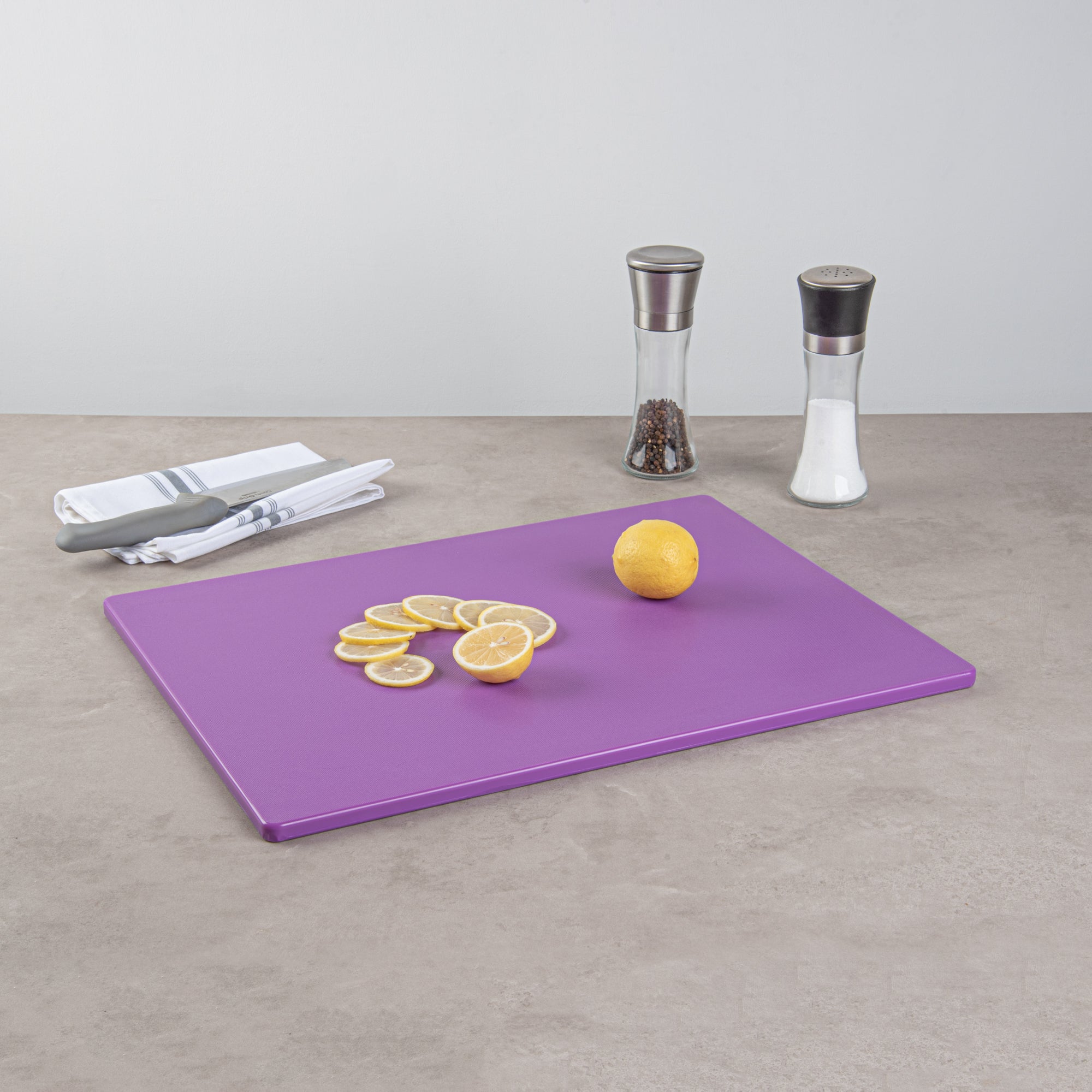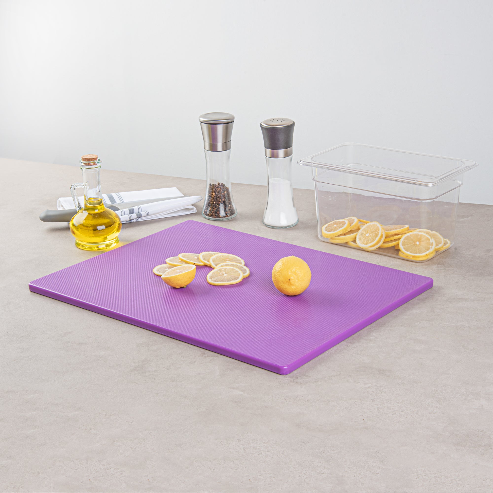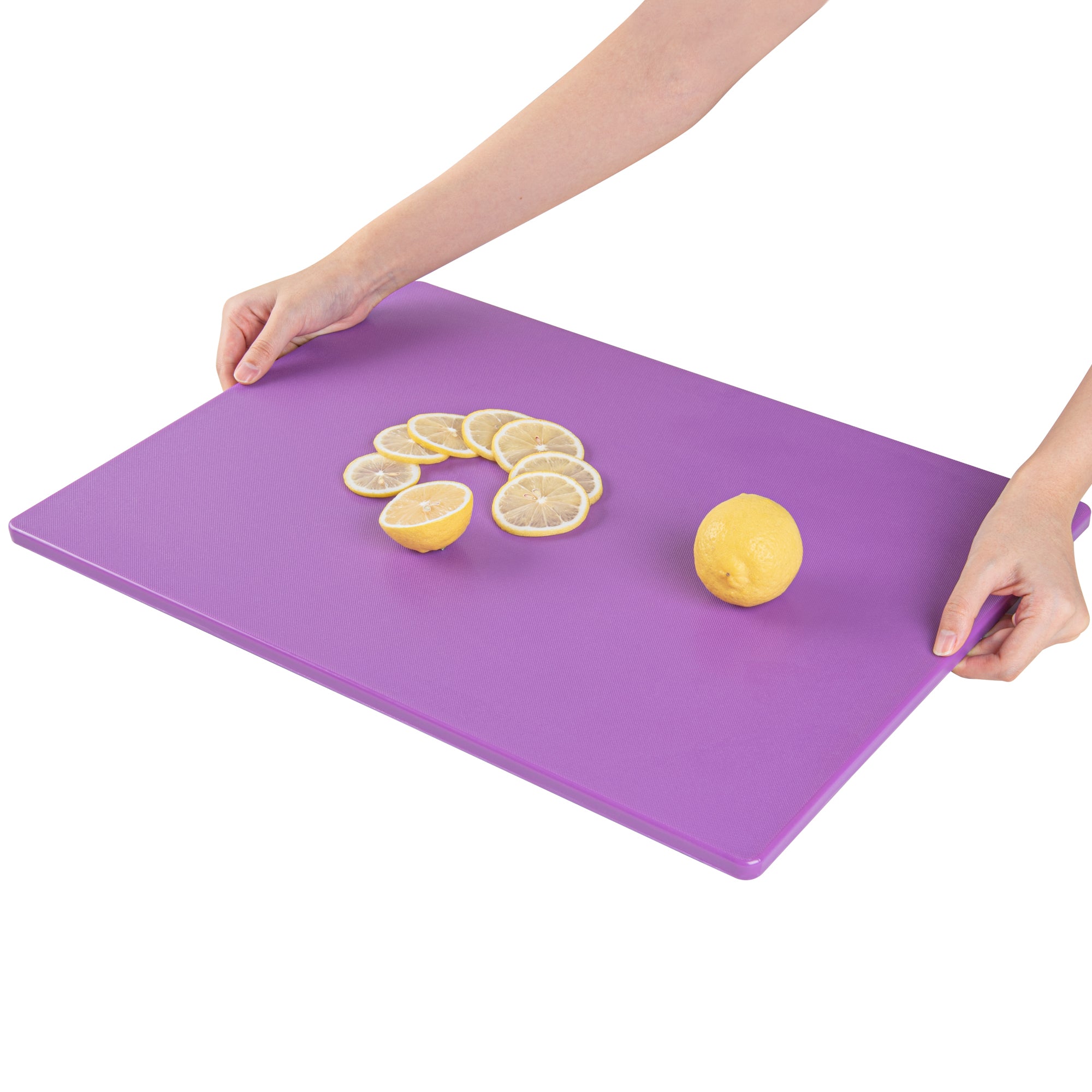 These color-coded cutting boards establish a system of assigning red to raw meats, green to fruits and vegetables, and yellow to poultry significantly increases cleanliness and enables the kitchen staff to quickly identify and use the correct board for each food type. These cutting boards come in different colors to comply with the HACCP standards.