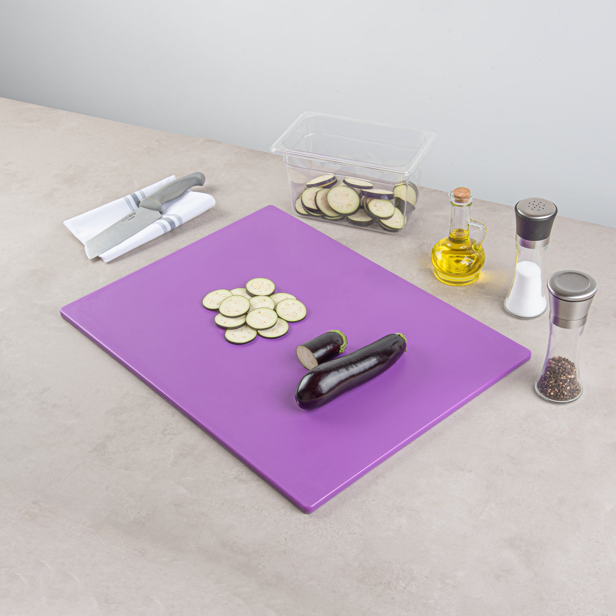 PURPLE PLASTIC CUTTING BOARD