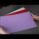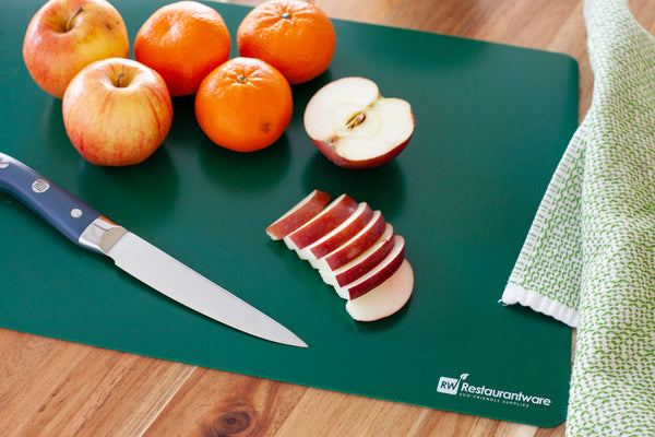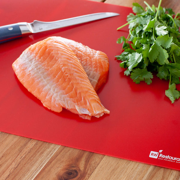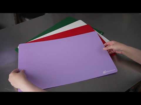 Protect countertops from damage when chopping or slicing ingredients using our Chef 101 Rectangle Assorted Plastic Flexible Cutting Board / Chopping Mat Set. This plastic cutting board set includes 4 color-coded cutting mats to prevent cross-contamination and increase organization in your commercial kitchen. Each chopping board is designed for a specific food group: red is for raw meat, green is for fruits and vegetables, white is for dairy and bakery products, and purple is allergen-free products. This chopping board set is flexible, allowing your staff to bend them and effortlessly slide ingredients directly into cookware or tableware. Constructed from high-quality plastic, this chopping board set is naturally durable to prevent knives from cutting through and damaging tabletops. This chopping mat set is built to withstand commercial dishwasher use to easily remove the juices foods leave behind and streamline the cleaning process at your deli, restaurant, or cafeteria. Keep mats organized with our cutting board rack that includes 6 slots (SKU: RWT0635B). Measuring 18 inches in length and 12 inches in width, this chopping board set includes 4 boards per order. Cutting mat racks are available and sold separately.