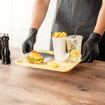 - Raised edges offer a secure grip when carrying trays to customers