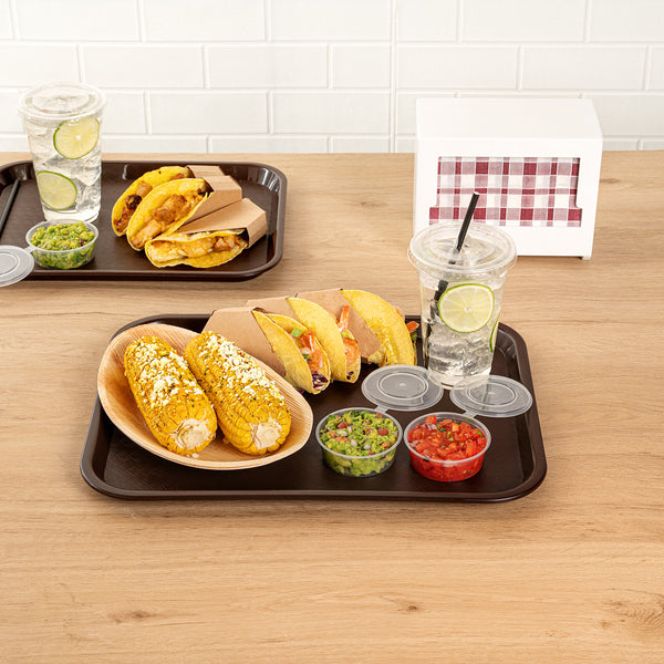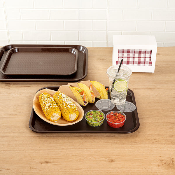 The wide surface of these fast food trays provides ample space, allowing customers to conveniently carry multiple items such as drinks, burgers, fries, and condiments all at once. Make it easy for customers to enjoy their meals.