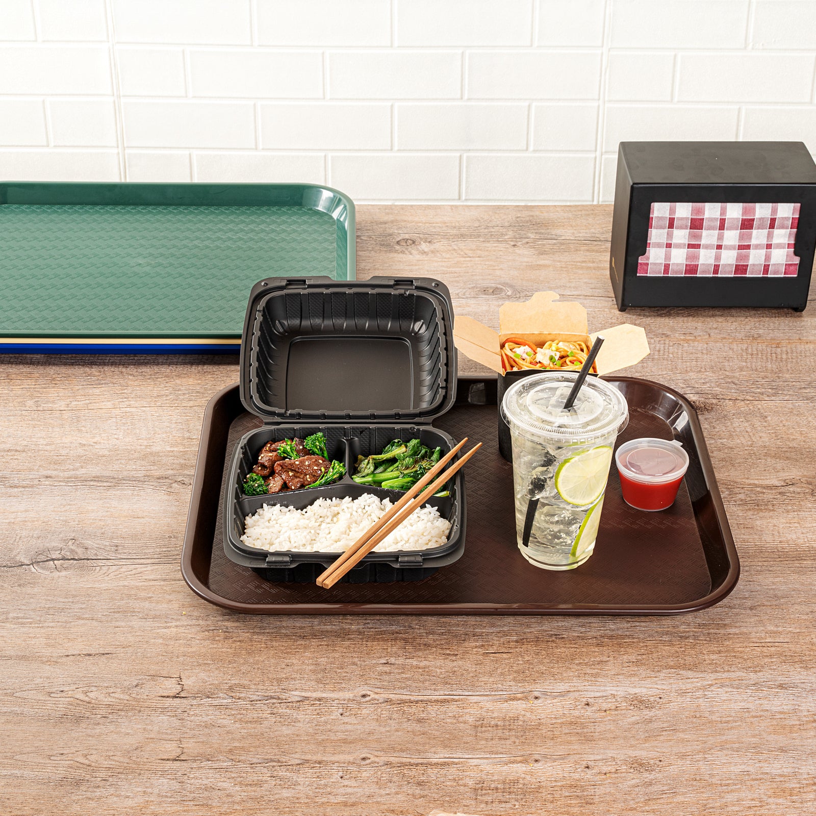 Allowing convenient portability, these plastic lunch trays make it simple for customers to transport their meals from the counter to their tables without strain or discomfort. Enhance the overall dining experience!