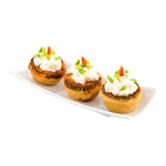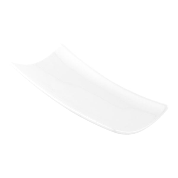 Serve your bite-sized appetizers and desserts in style on these Porcelain Shinto Rectangular Plates. Featuring a Japanese-inspired design with curved edges, these porcelain dishes add a touch of simplistic elegance to any occasion. Their elevated bases instantly boost your food presentation, while their bright white finish provides a striking contrast to your ingredients. Constructed from premium porcelain, these appetizer plates are built to be long-lasting, chip-resistant, and easy to clean and maintain. Browse our Chef 101 coordinating selection of Shinto porcelain plates (including SKUs: RWC0056 and RWC0057) to complete your sushi set! Each of these small rectangular plates measures 6 inches in length by 2.4 inches in width. Shipped in a 10 count box.