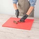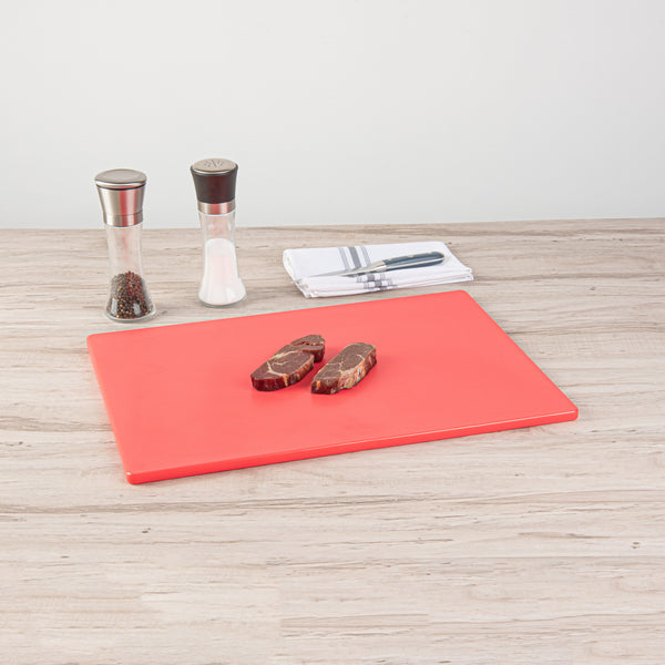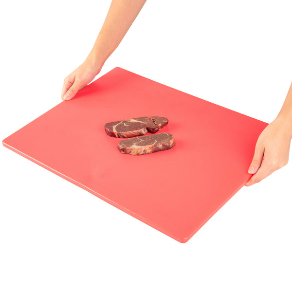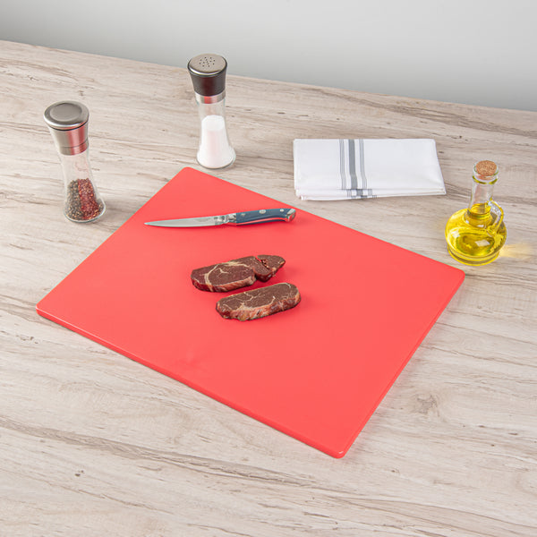 These color-coded cutting boards establish a system of assigning red to raw meats, green to fruits and vegetables, and yellow to poultry significantly increases cleanliness and enables the kitchen staff to quickly identify and use the correct board for each food type. These cutting boards come in different colors to comply with the HACCP standards.