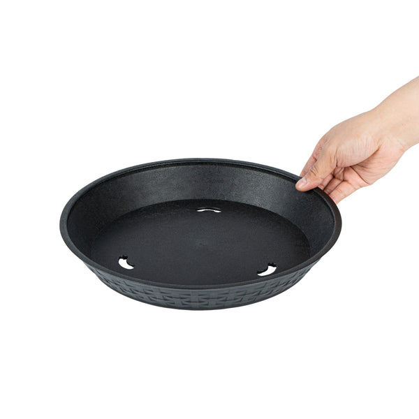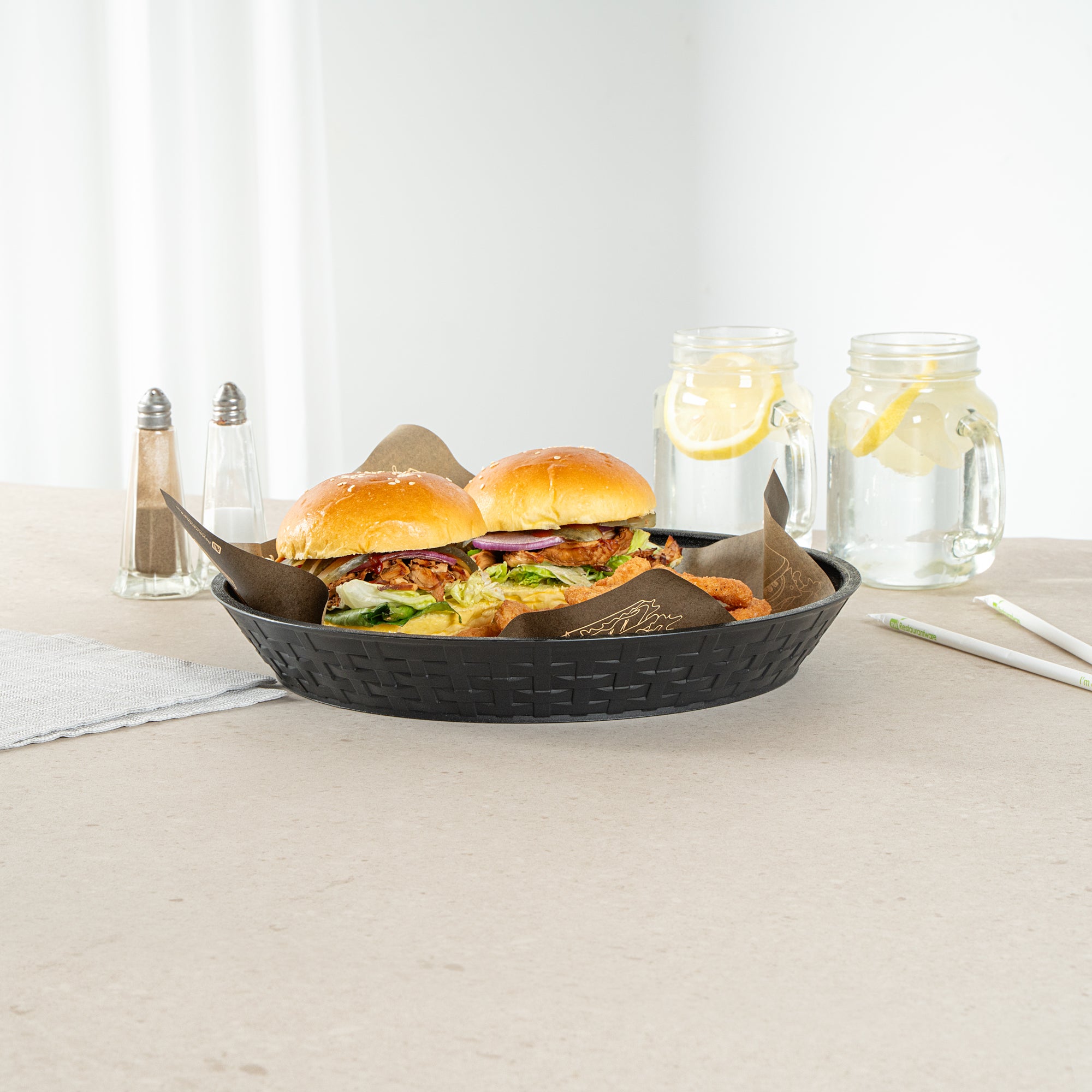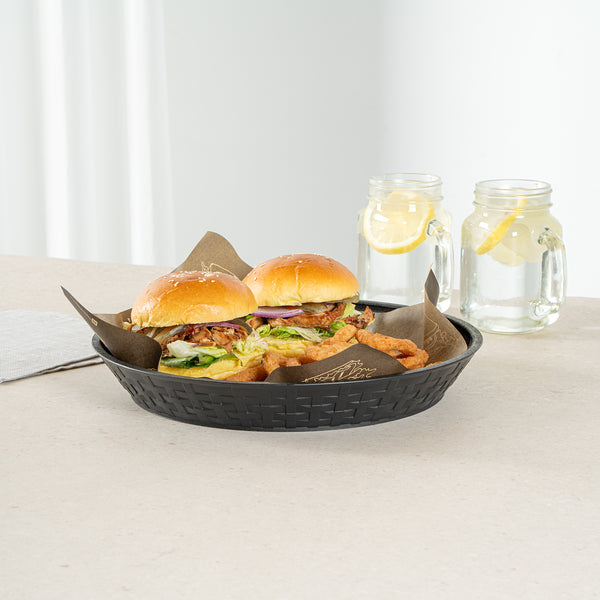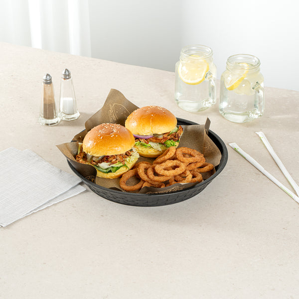 Elevate your dining experience with our Chef 101 Round Black Plastic Diner Platters, expertly designed for stylish and practical food presentation. Made from durable plastic, these lightweight serving trays are suitable for showcasing fried foods, wings, sandwiches, or appetizers. Built-in drain holes enhance post-wash drying, effectively avoiding water pooling on these diner platters. Microwave-secure construction allows for quick reheating, making these plastic platters a convenient choice for busy kitchens. Effortless and time-saving cleanup is ensured with the easy-to-clean design of these reusable platters. For easy portability and space-saving storage, these serving trays are stackable. The bold black color of these food platters adds sophistication, while the lattice sides offer a classic, timeless look. Measuring 12.01 inches in diameter by 1.77 inches in height, these platters provide ample space for generous food portions. Sold in a 10 count box.