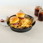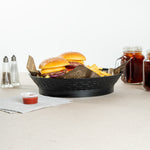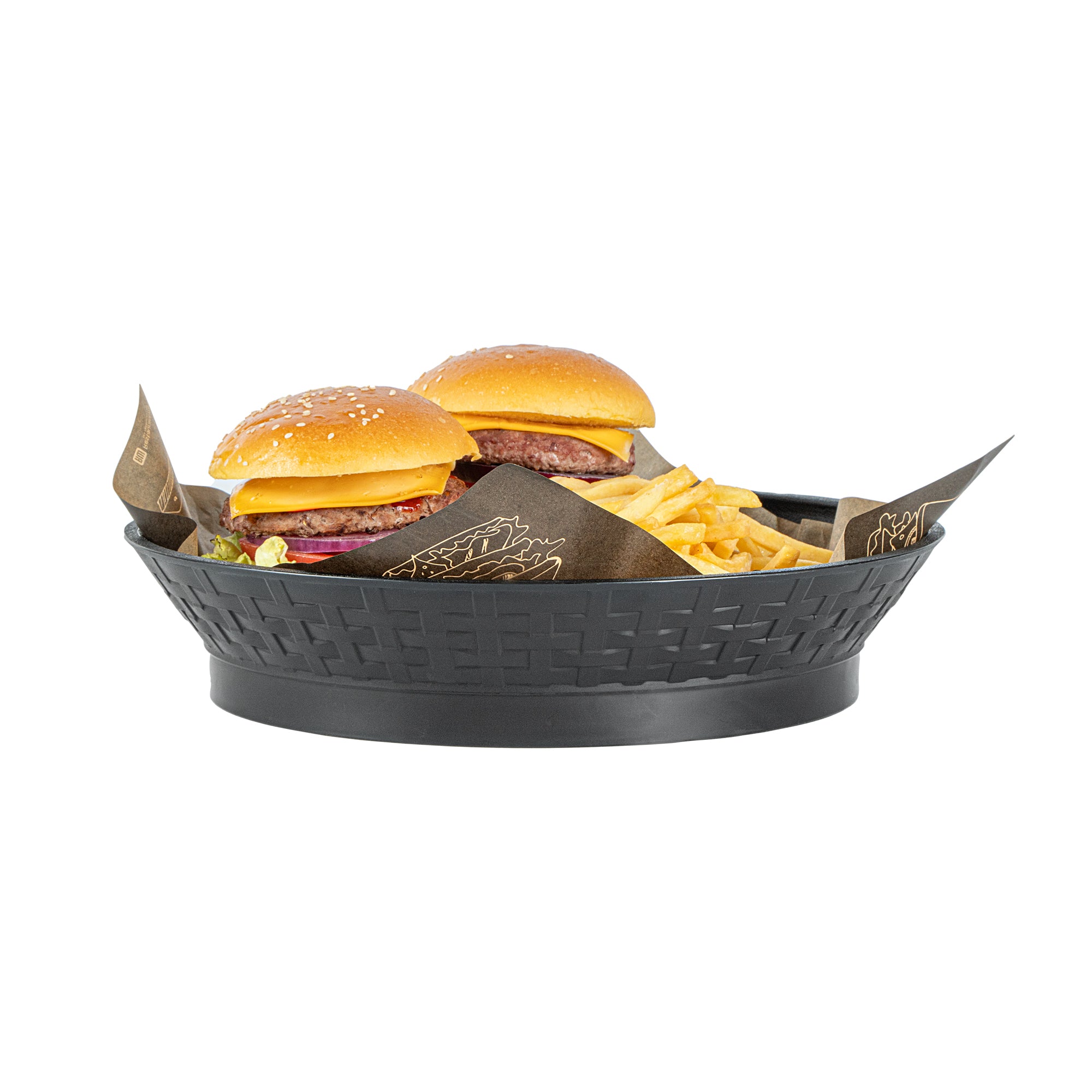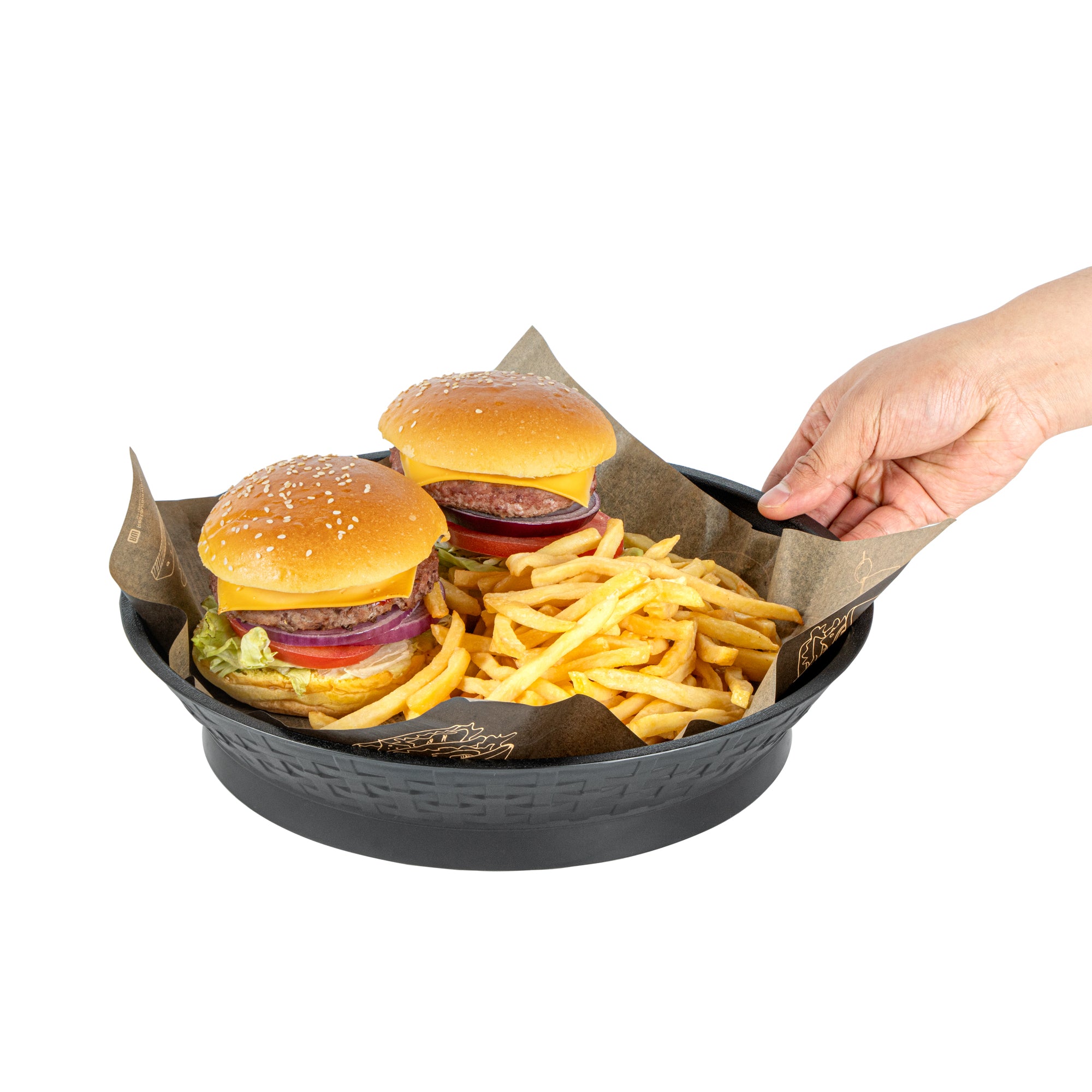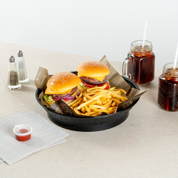 Elevate your food presentation with our Chef 101 Round Black Plastic Diner Platters. These durable plastic platters are suitable for serving fried foods, wings, sandwiches, or appetizers in style. Lightweight and sturdy, these reusable platters feature a base that elevates food above the table for added visual appeal. Built-in drain holes on these food platters aid in post-wash drying to avoid water pooling. Suitable for busy kitchens, these microwavable serving trays allow for quick reheating of meals. Designed for convenience, these dishwashable diner platters ensure effortless and time-saving cleanup. Stackable for space-saving storage, these plastic platters offer easy portability. The bold black color of these platters enhances food presentation, while the lattice sides add a classic, timeless look. Measuring 12.01 inches in diameter by 2.36 inches in height, these platters provide ample space for a variety of dishes. Sold in a 100 count box.