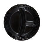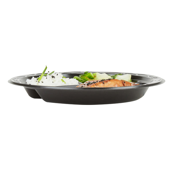 ROUND BLACK PLASTIC PLATE - 3 COMPARTMENTS, MICROWAVABLE