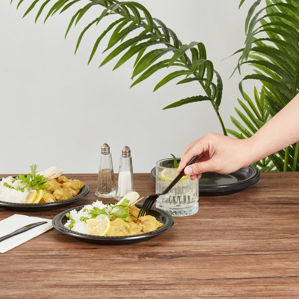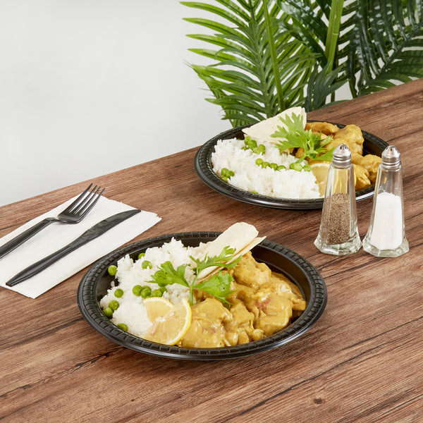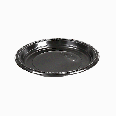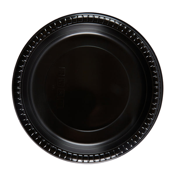 ROUND BLACK PLASTIC PLATE - MICROWAVABLE