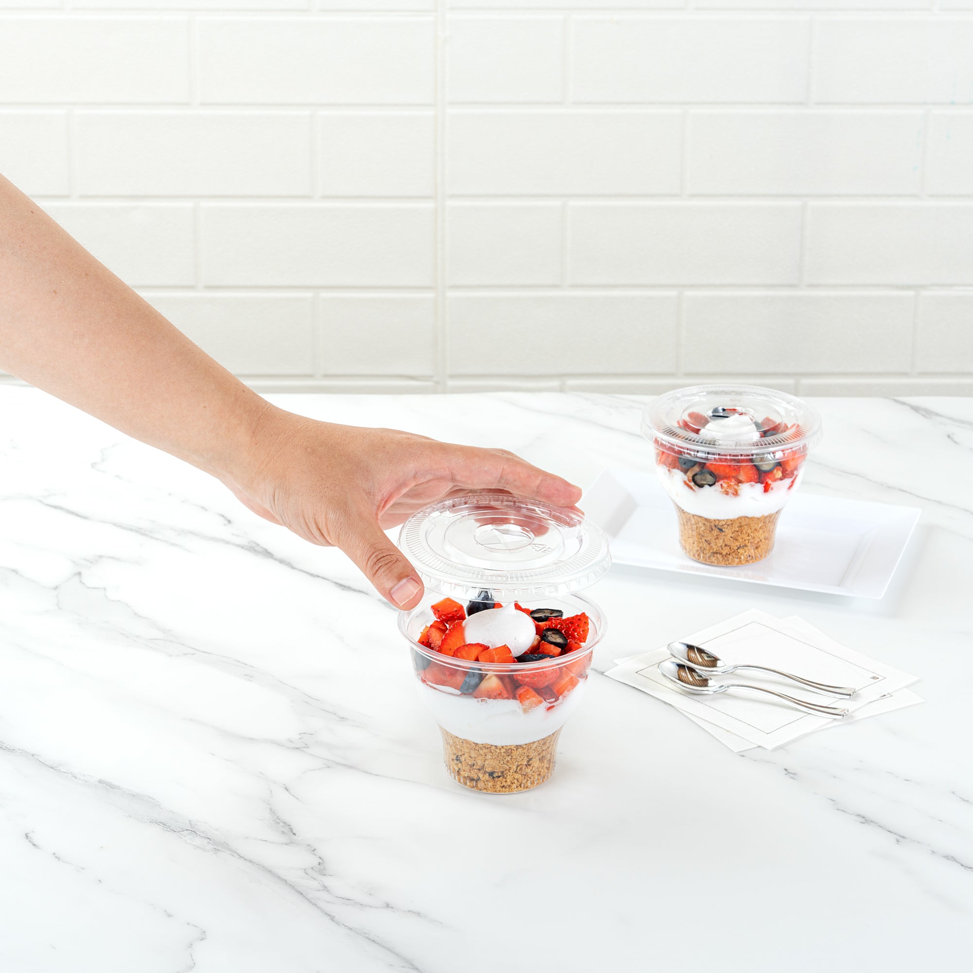 These plastic lids are available in a wide variety of designs, catering to your specific needs and preferences. Find the perfect match to complement your dessert cups and enhance your presentation.