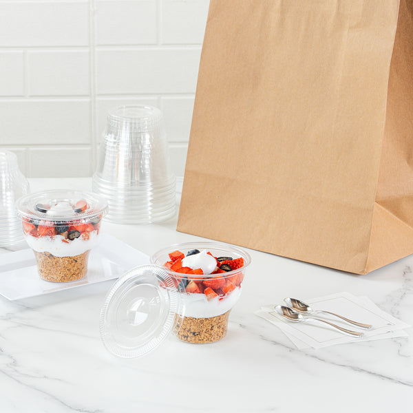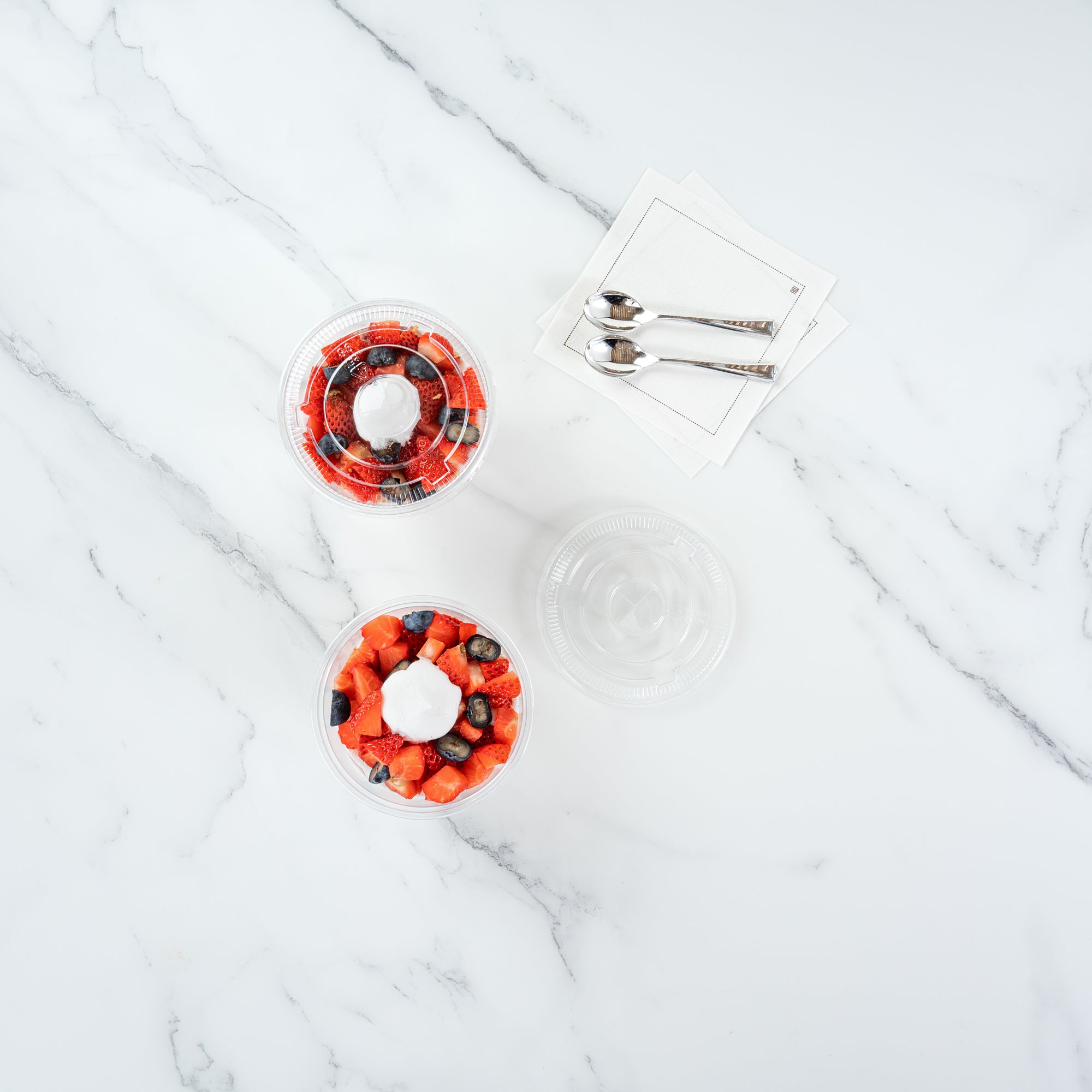 Use these clear lids with our collection of compatible RW Base dessert cups and ensure your desserts stay fresh and secure during transport with this perfect pairing. Disposable for easy cleanup!