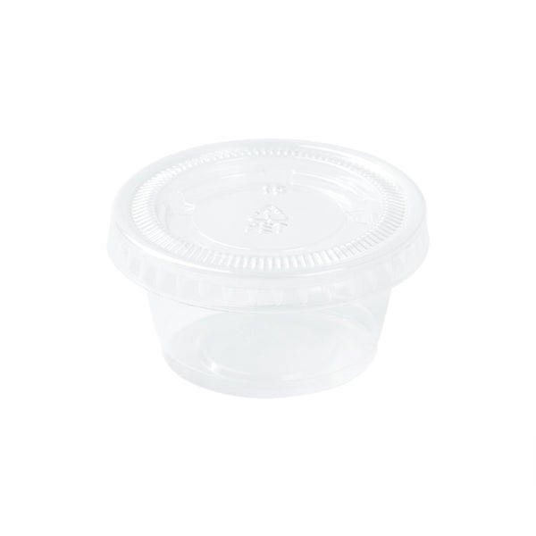 ROUND CLEAR PLASTIC PORTION CUP LID - FITS 0.8 AND 1 OZ